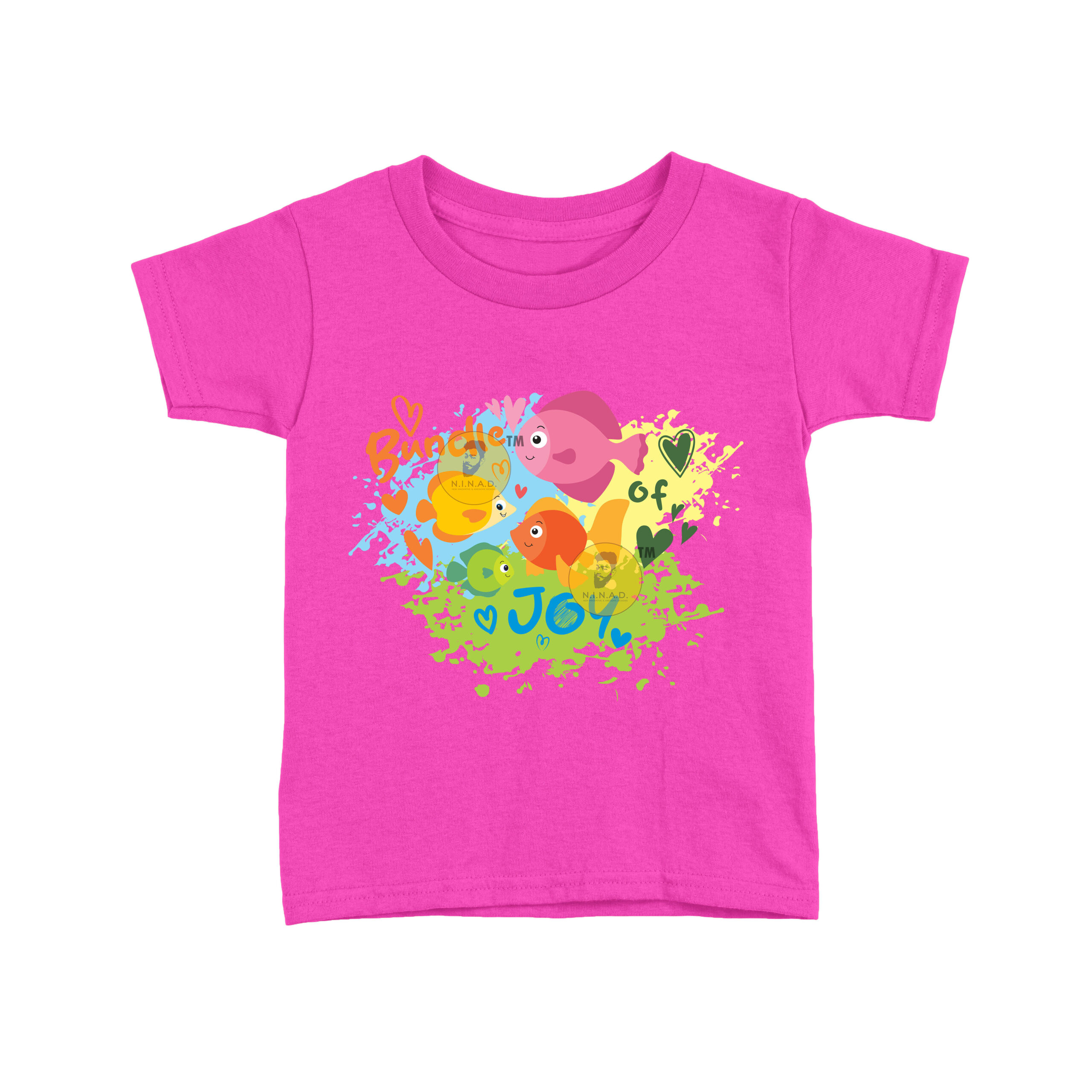 Bring cheer to your little one’s wardrobe with our “Bundle of Joy” Kids T-Shirt. Featuring colorful cartoon fishes surrounded by playful hearts and vibrant text, this tee perfectly captures the innocence, fun, and happiness of childhood. A bright and lively design that adds positivity to any day.