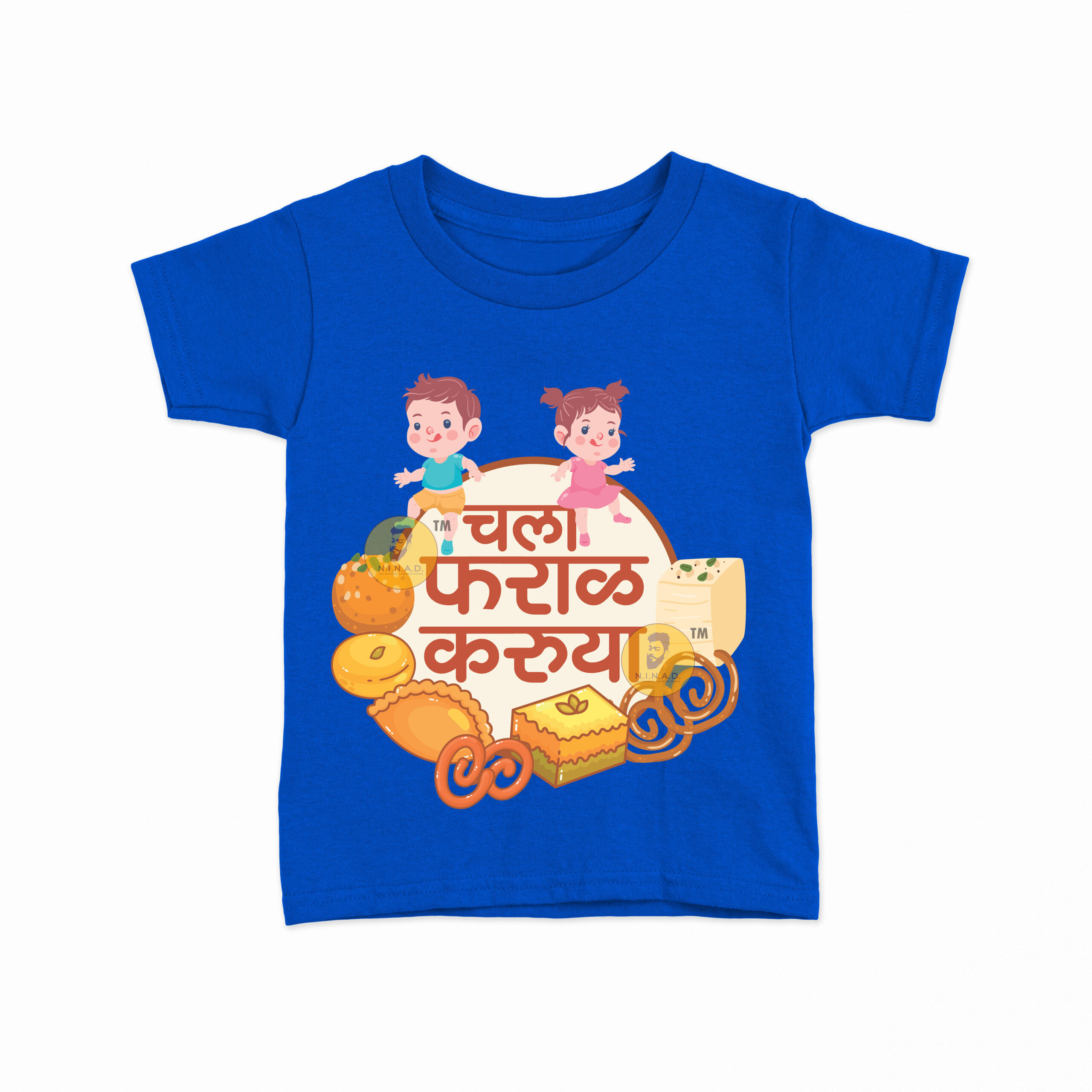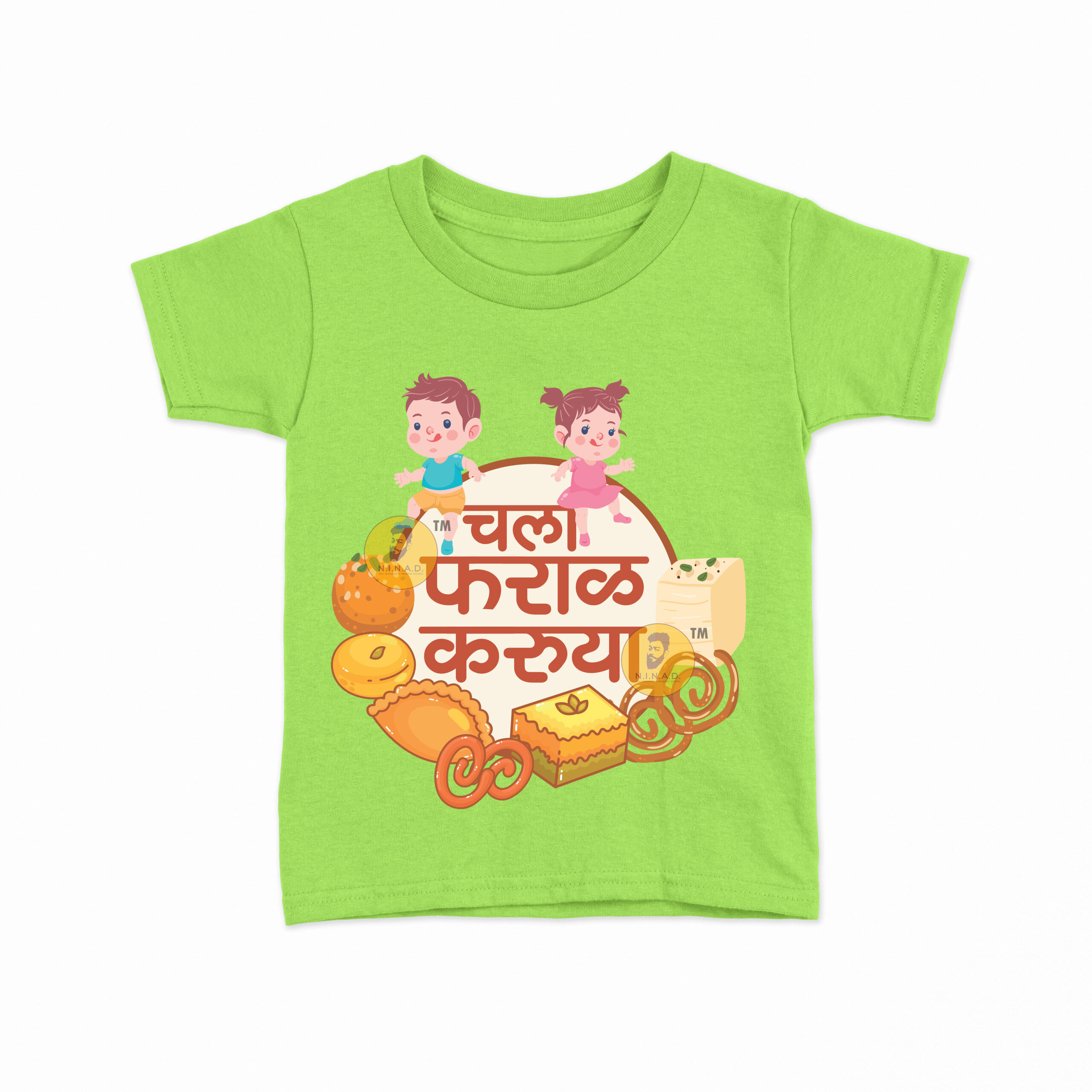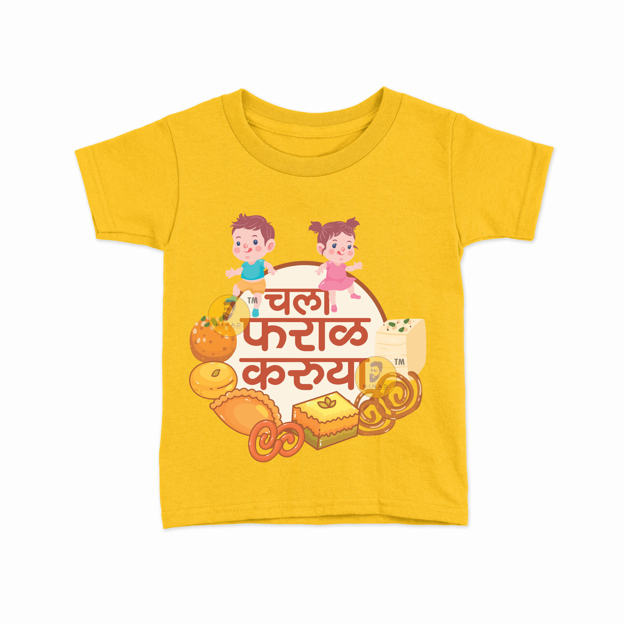 Add a dash of fun and flavor to your kid’s style with our “Chala Faraal Karuya” Kids T-Shirt. Featuring playful illustrations of kids surrounded by traditional Indian snacks and sweets, this tee celebrates festive vibes, foodie fun, and cultural love in the cutest way.