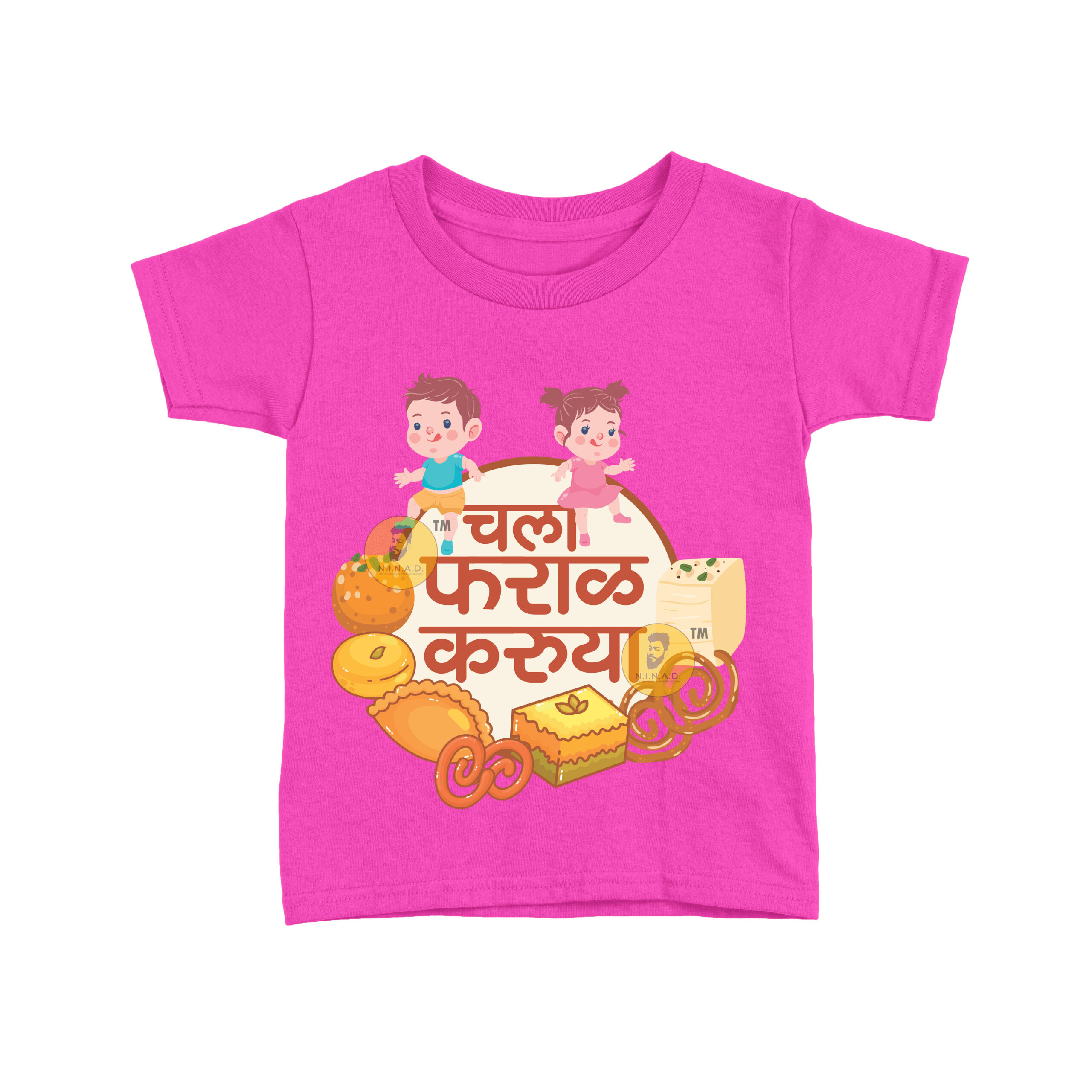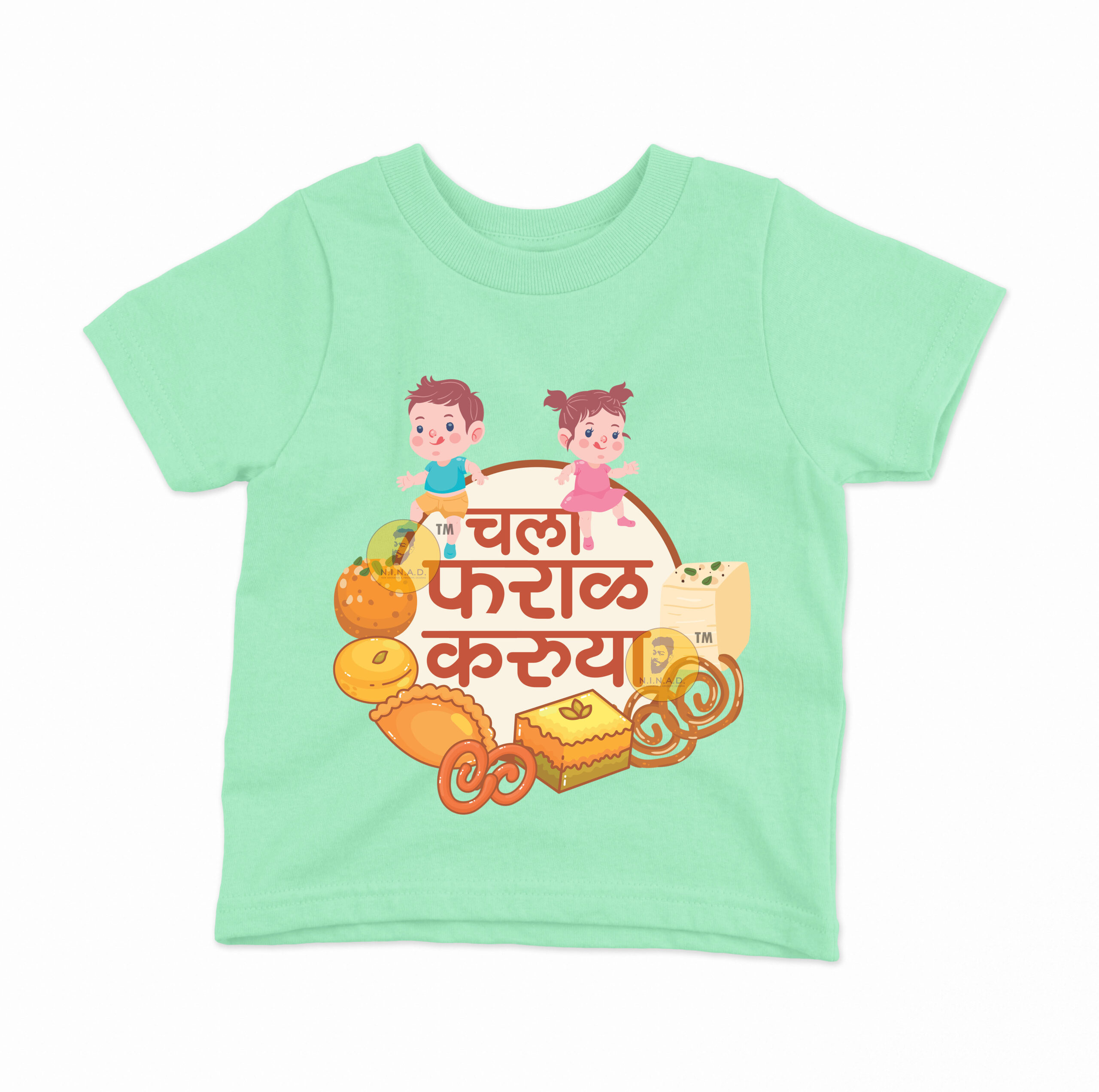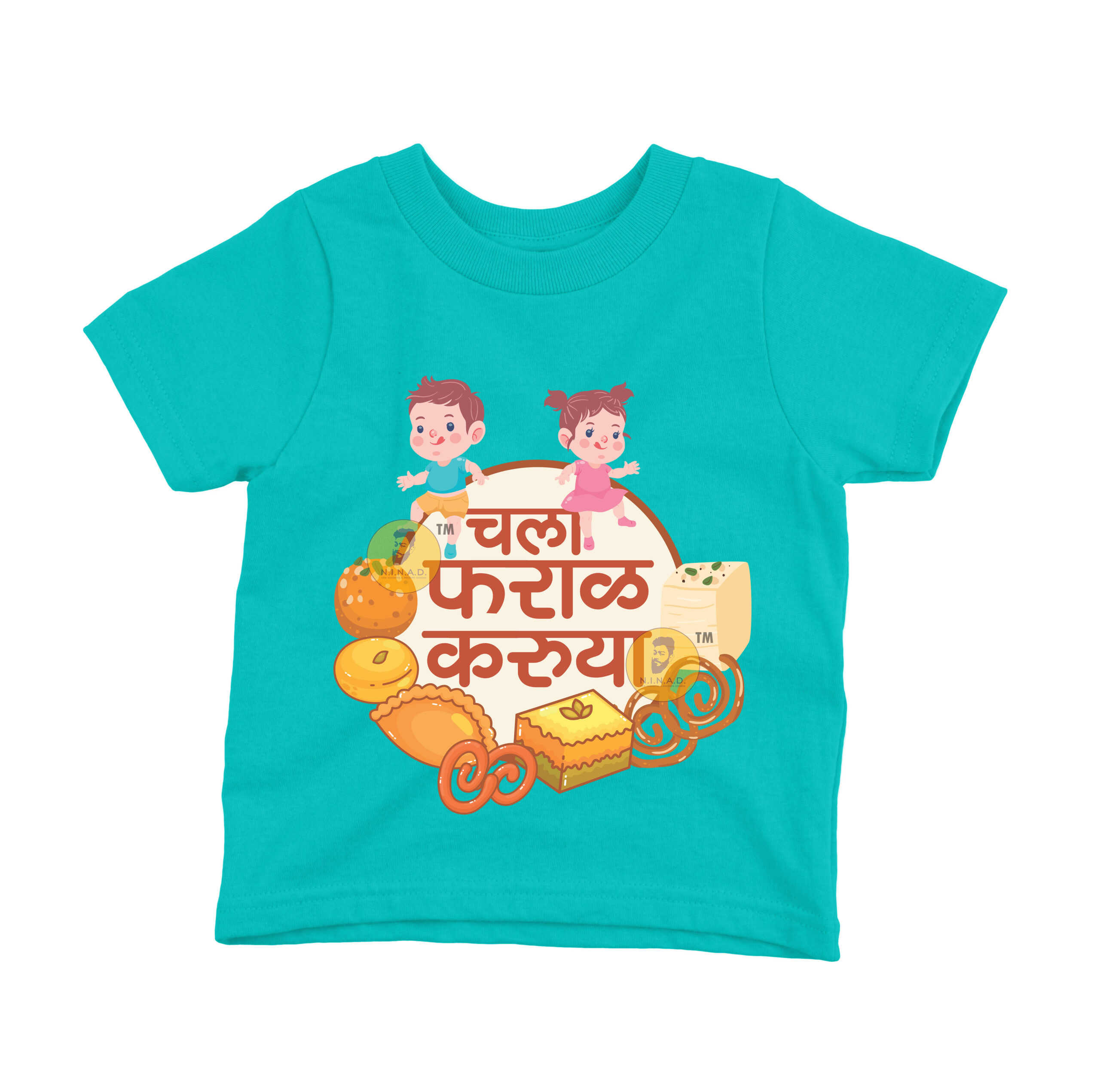 Add a dash of fun and flavor to your kid’s style with our “Chala Faraal Karuya” Kids T-Shirt. Featuring playful illustrations of kids surrounded by traditional Indian snacks and sweets, this tee celebrates festive vibes, foodie fun, and cultural love in the cutest way.