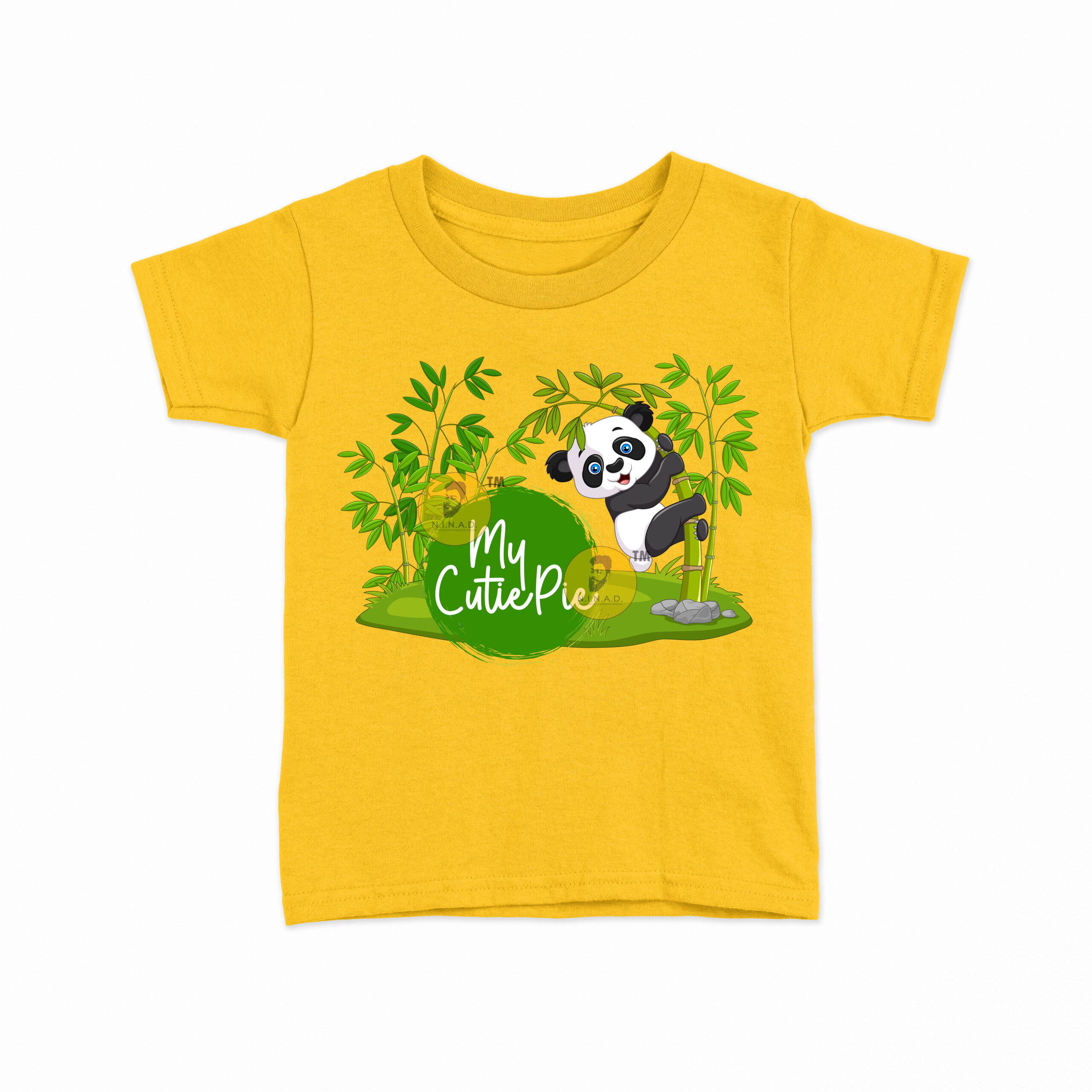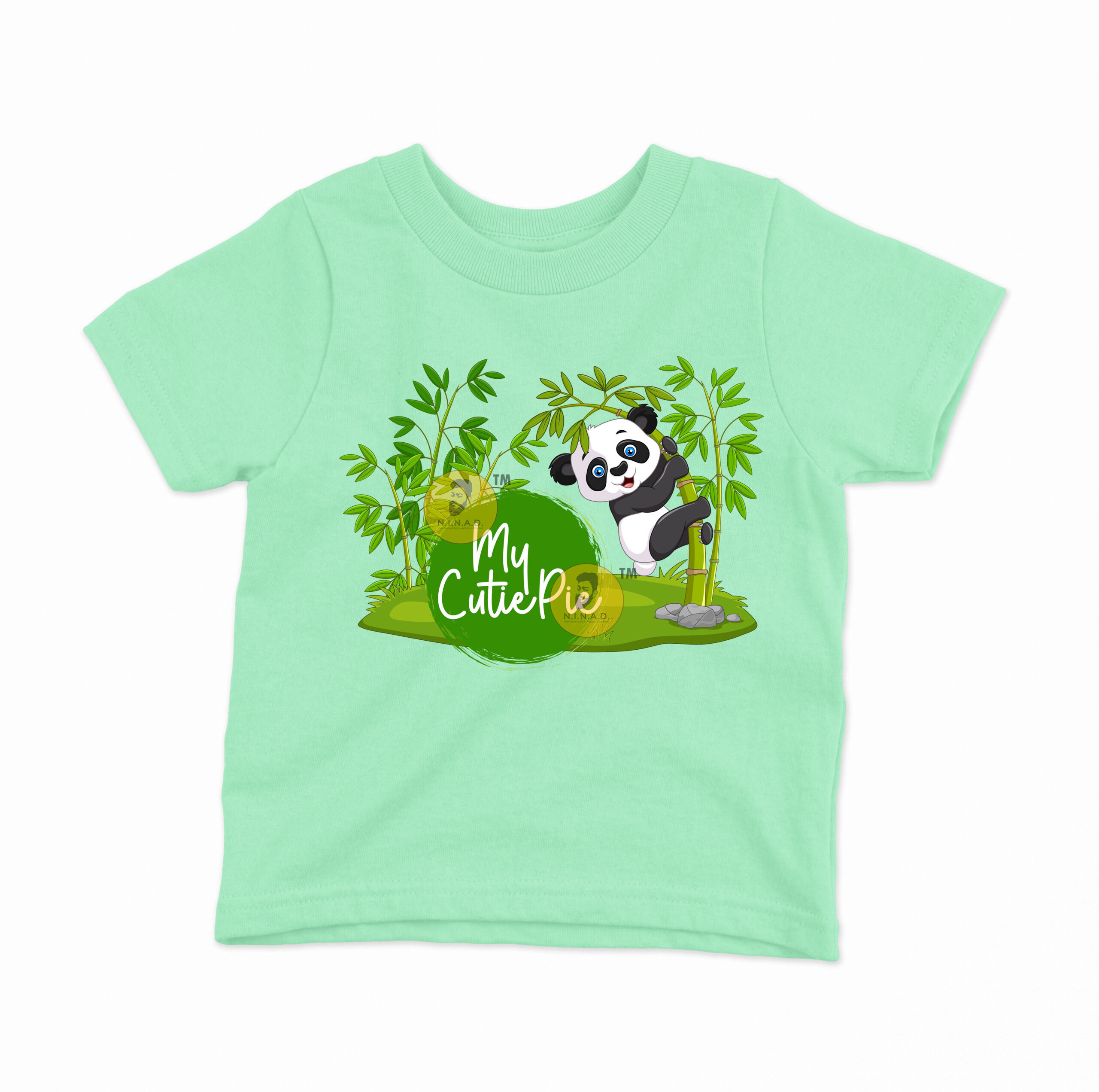 Add a dash of adorable charm to your kid’s outfit with our “My Cutie Pie” Kids T-Shirt. Featuring a playful panda climbing bamboo in a lush green backdrop, this tee is as cute and cheerful as your little one.
