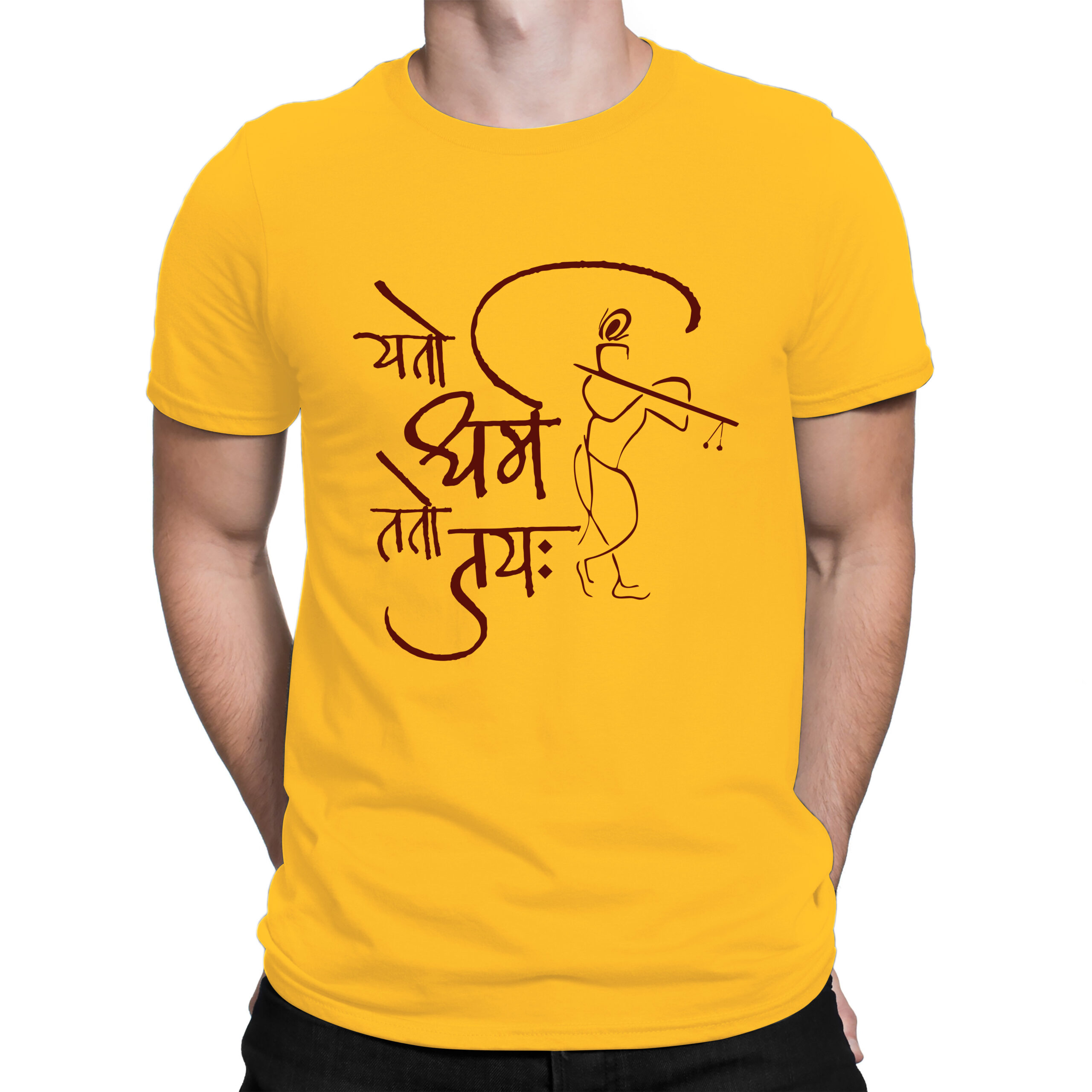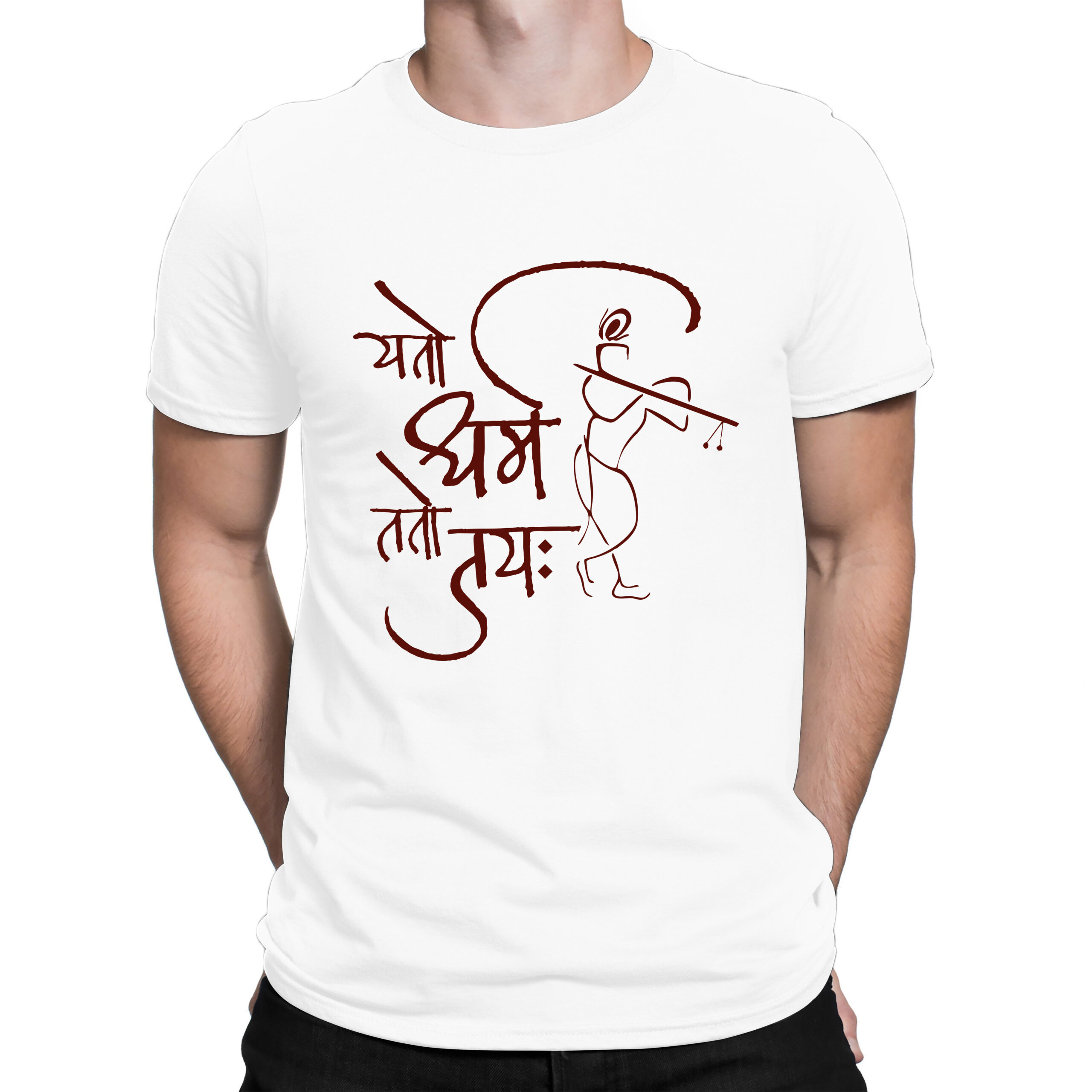 Invoke the spirit of righteousness and victory with our Yato Dharma tee – a perfect blend of tradition, art, and powerful meaning. Featuring a minimalist sketch of Lord Krishna playing his flute paired with the inspiring Sanskrit mantra “यतो धर्मस्ततो जयः,” this design speaks to those who live with purpose and passion.