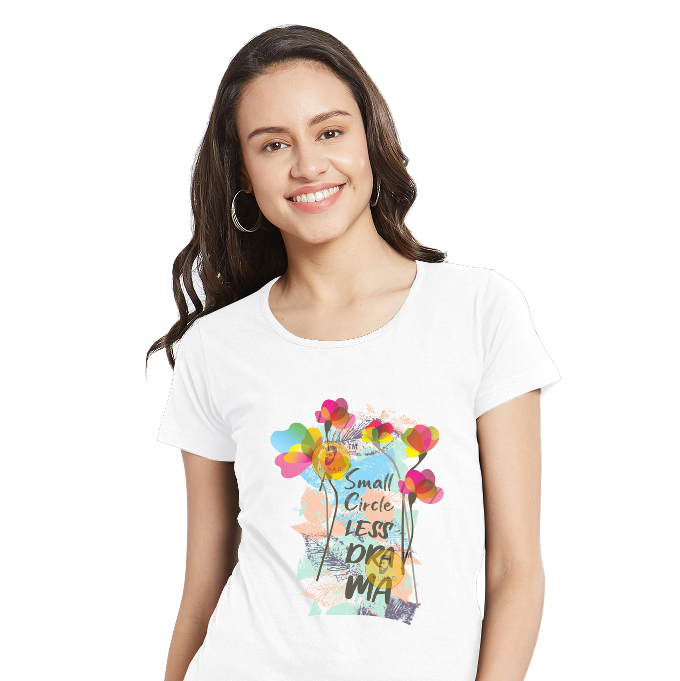 Keep your circle tight and your vibe even tighter with this stylish Small Circle, Less Drama tee. Featuring with heart-shaped flower petals and abstract nature elements, this design is perfect for those who prefer peace over chaos and real ones over crowds.