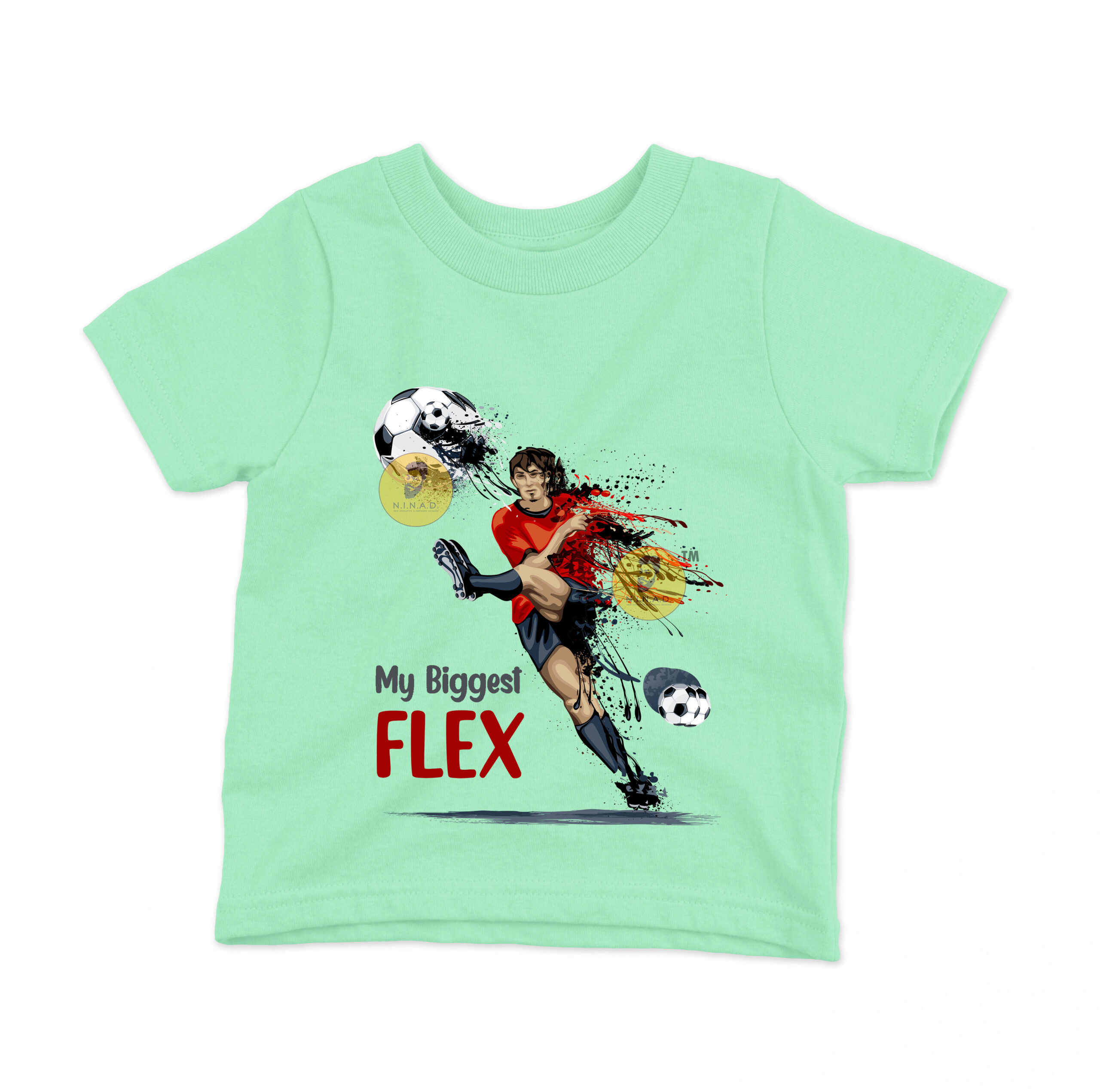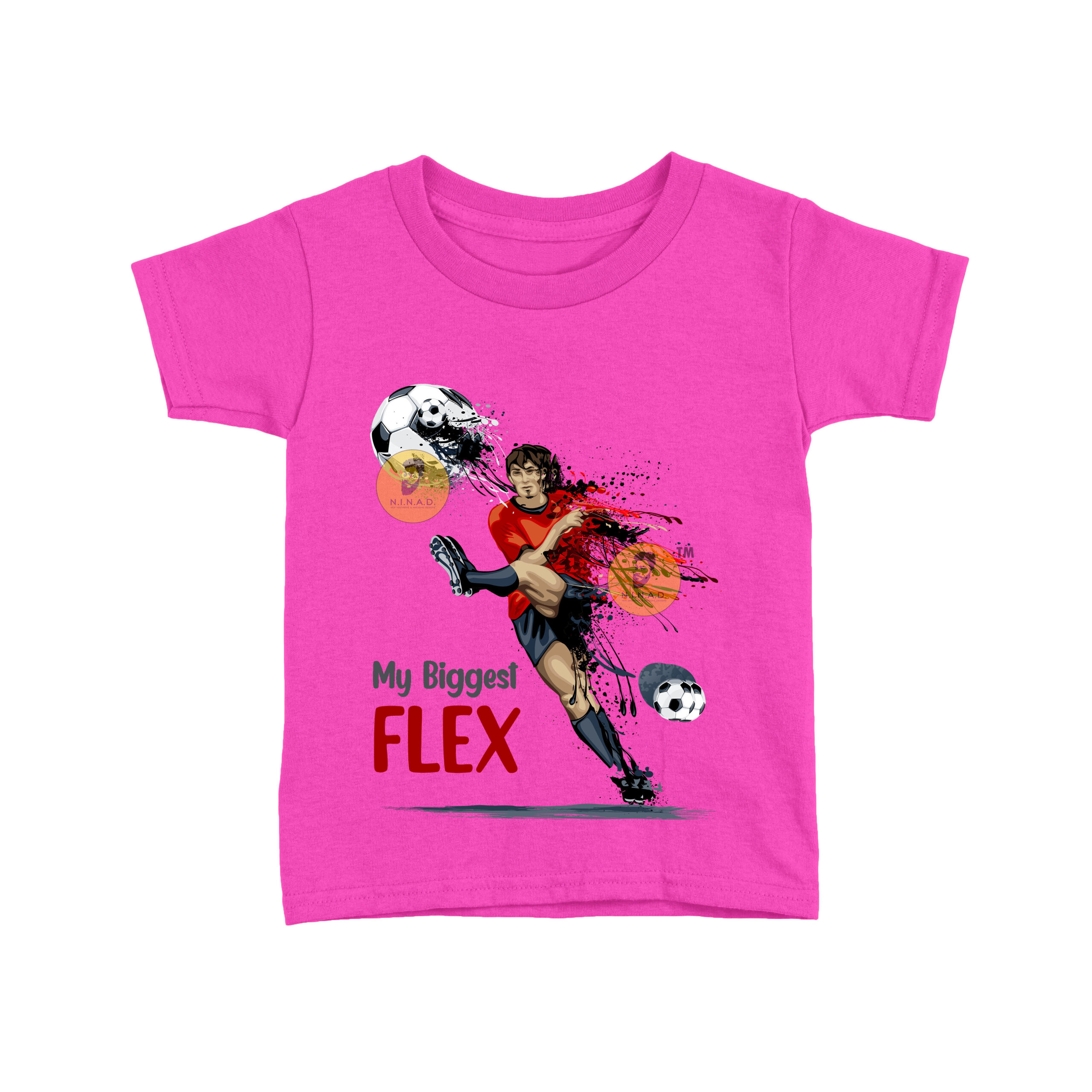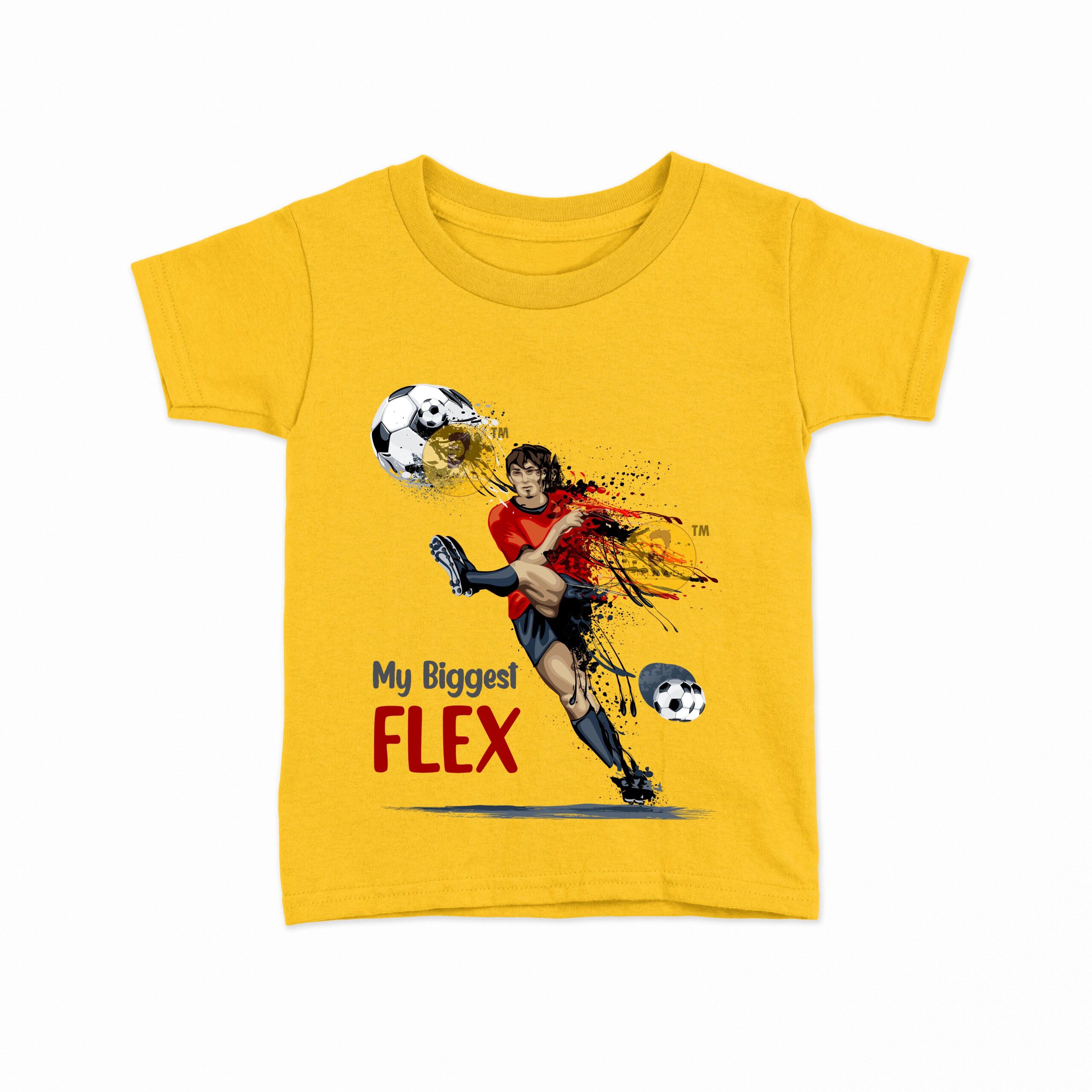 Add a sporty twist to your kid’s wardrobe with our “My Biggest Flex” Kids T-Shirt. Featuring a dynamic football player graphic with bold action strokes, this tee is perfect for young champions who love the game and aren’t afraid to show off their moves.