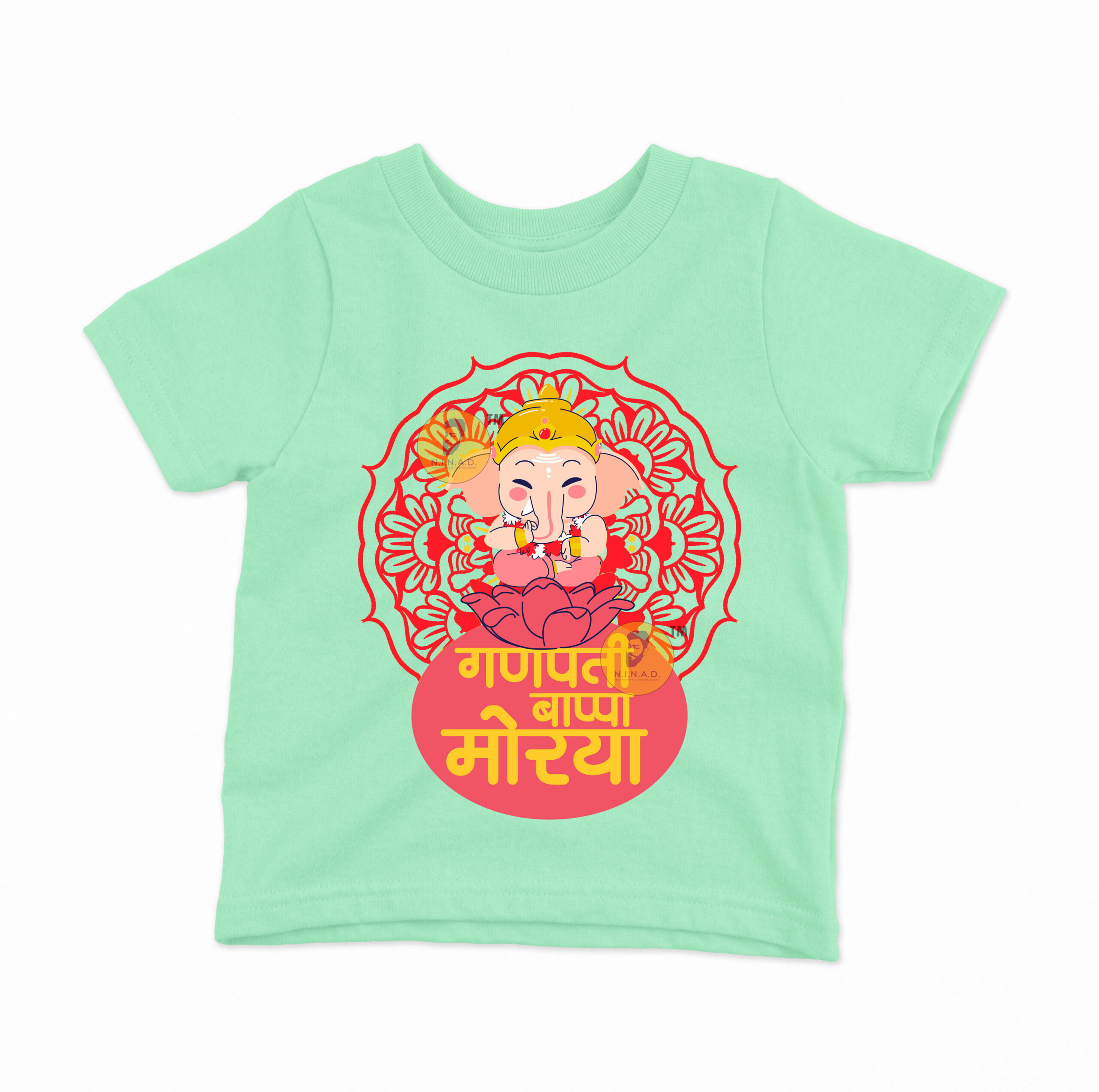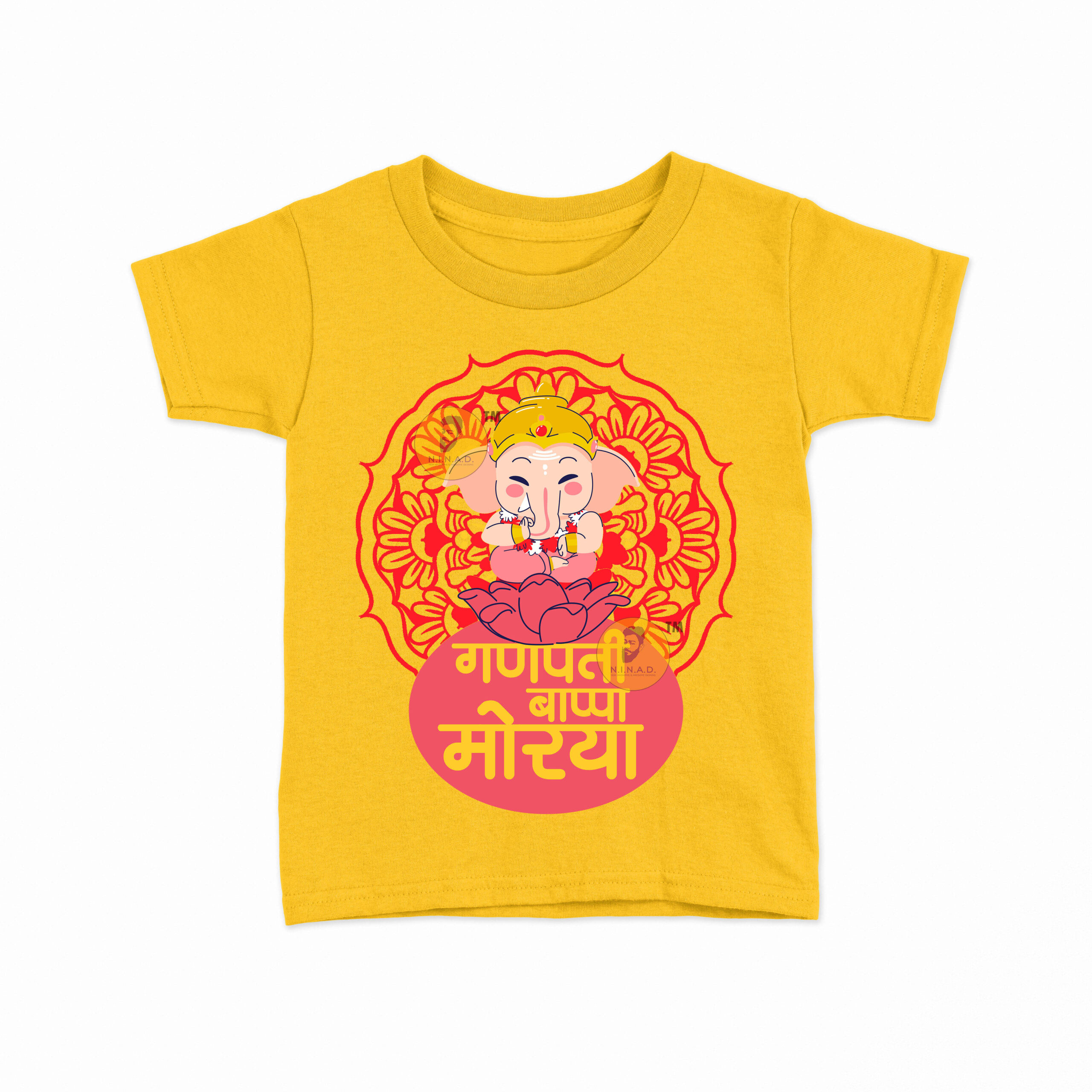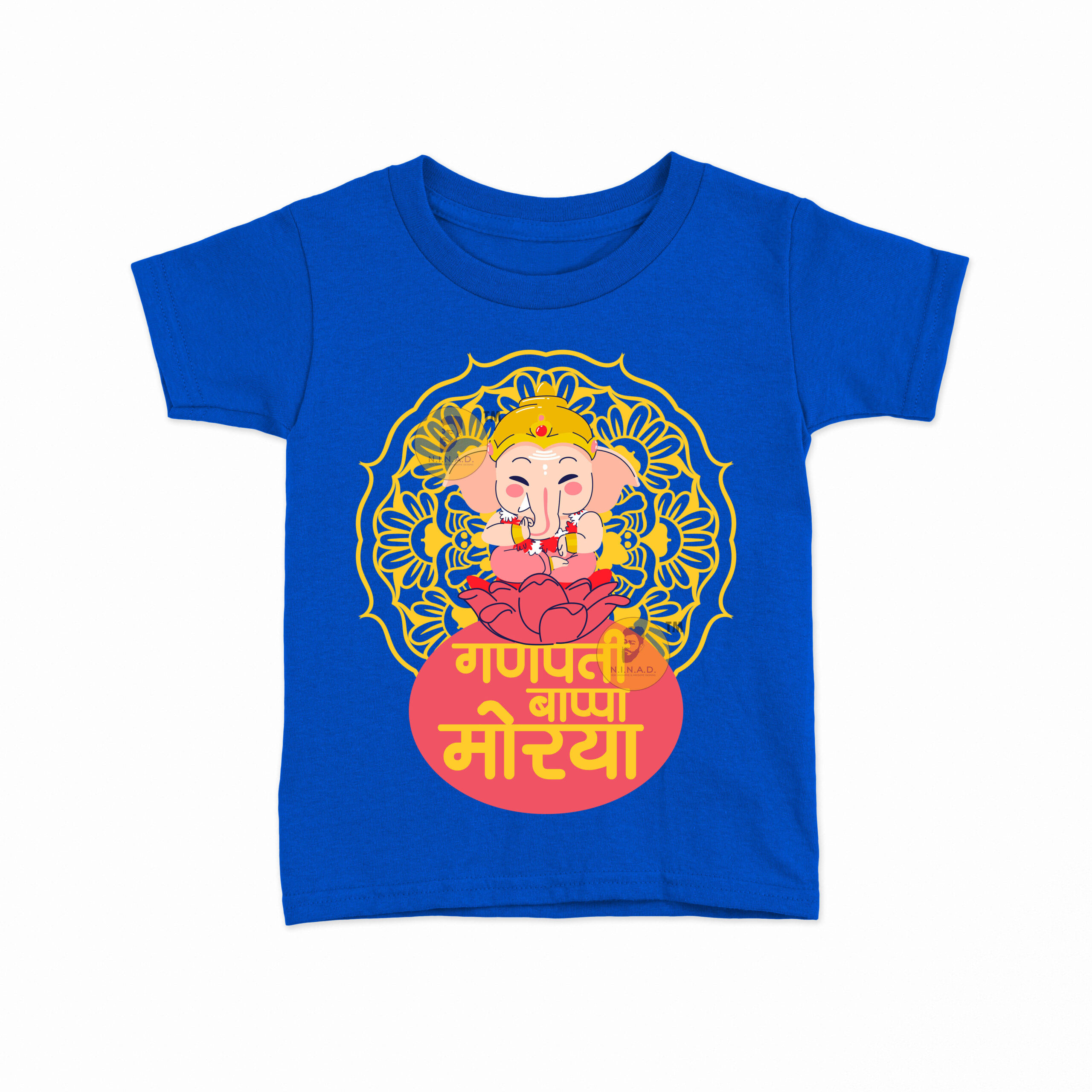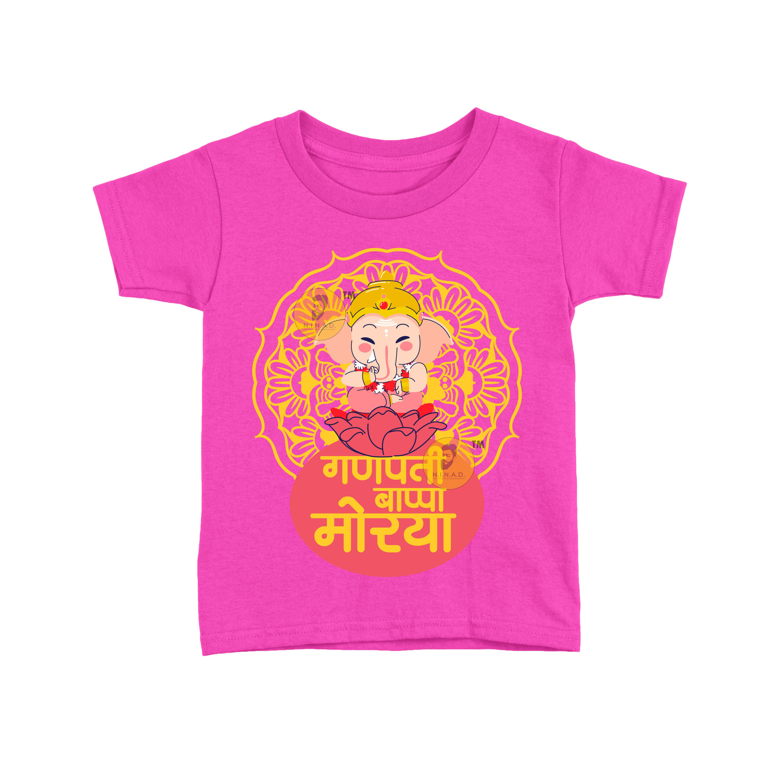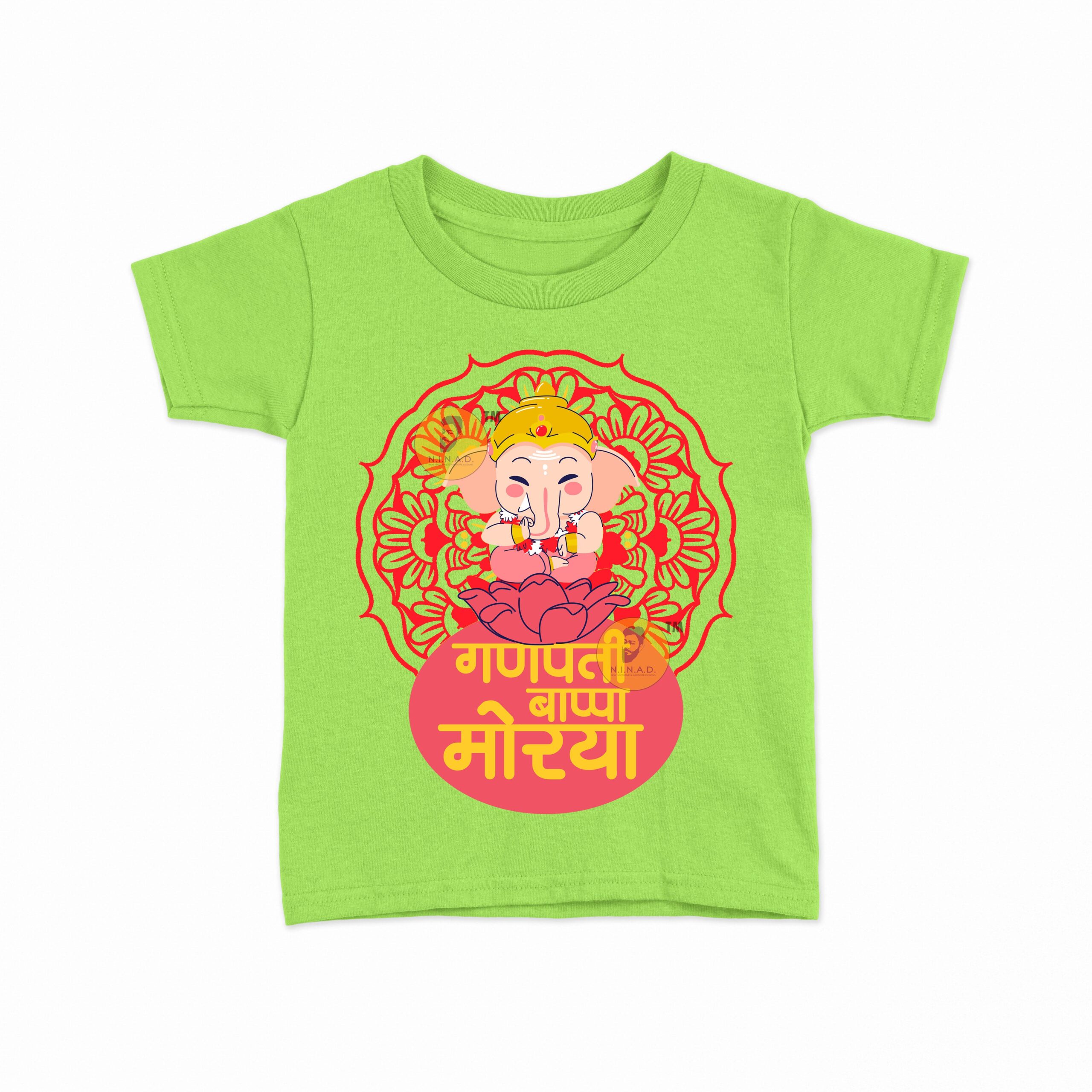 Add a festive touch to your kid’s wardrobe with our “Ganpati Bappa Morya” Kids T-Shirt. Featuring an adorable Lord Ganesha seated on a lotus with a vibrant mandala design, this tee perfectly blends devotion with cheerful style.