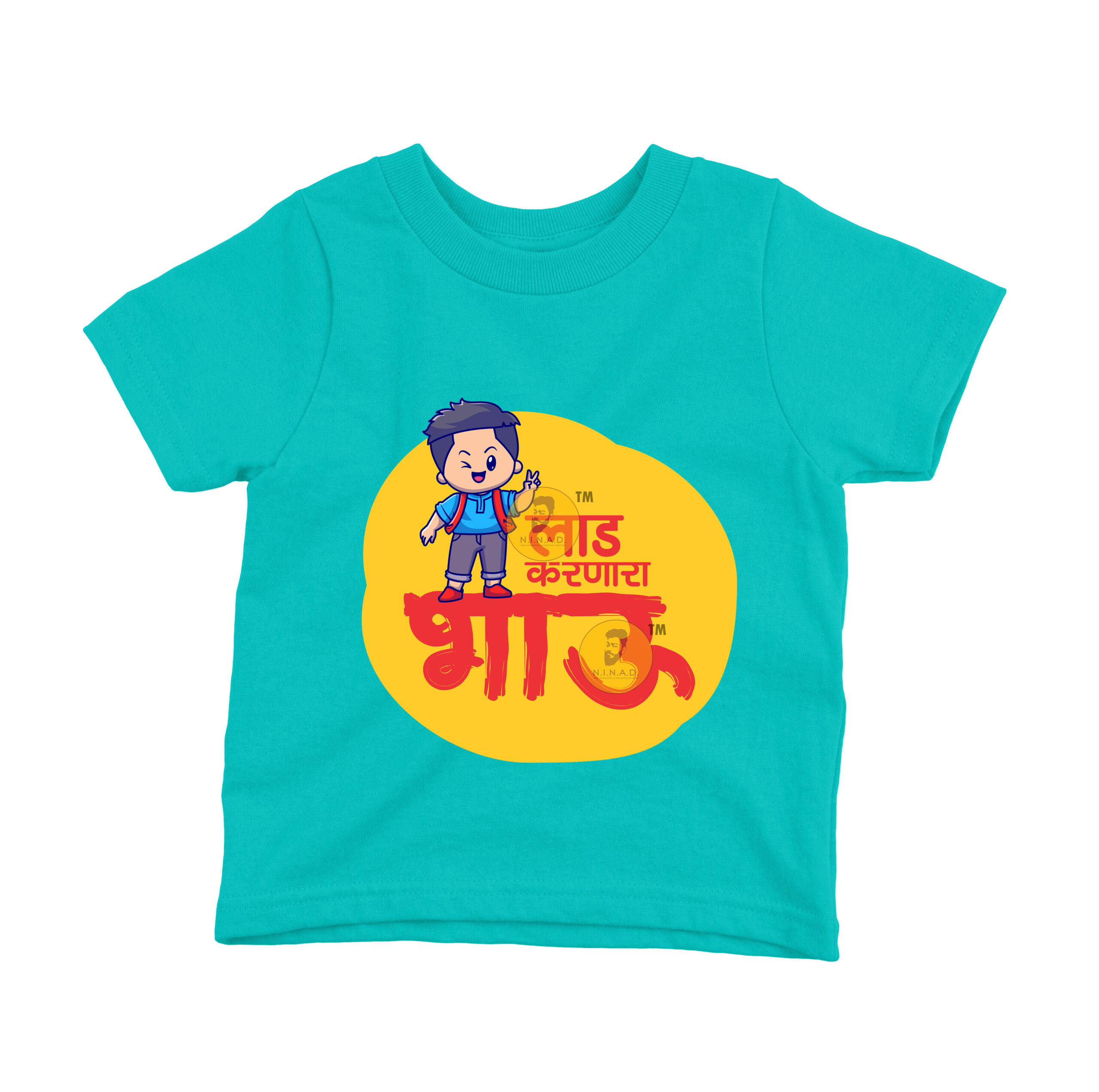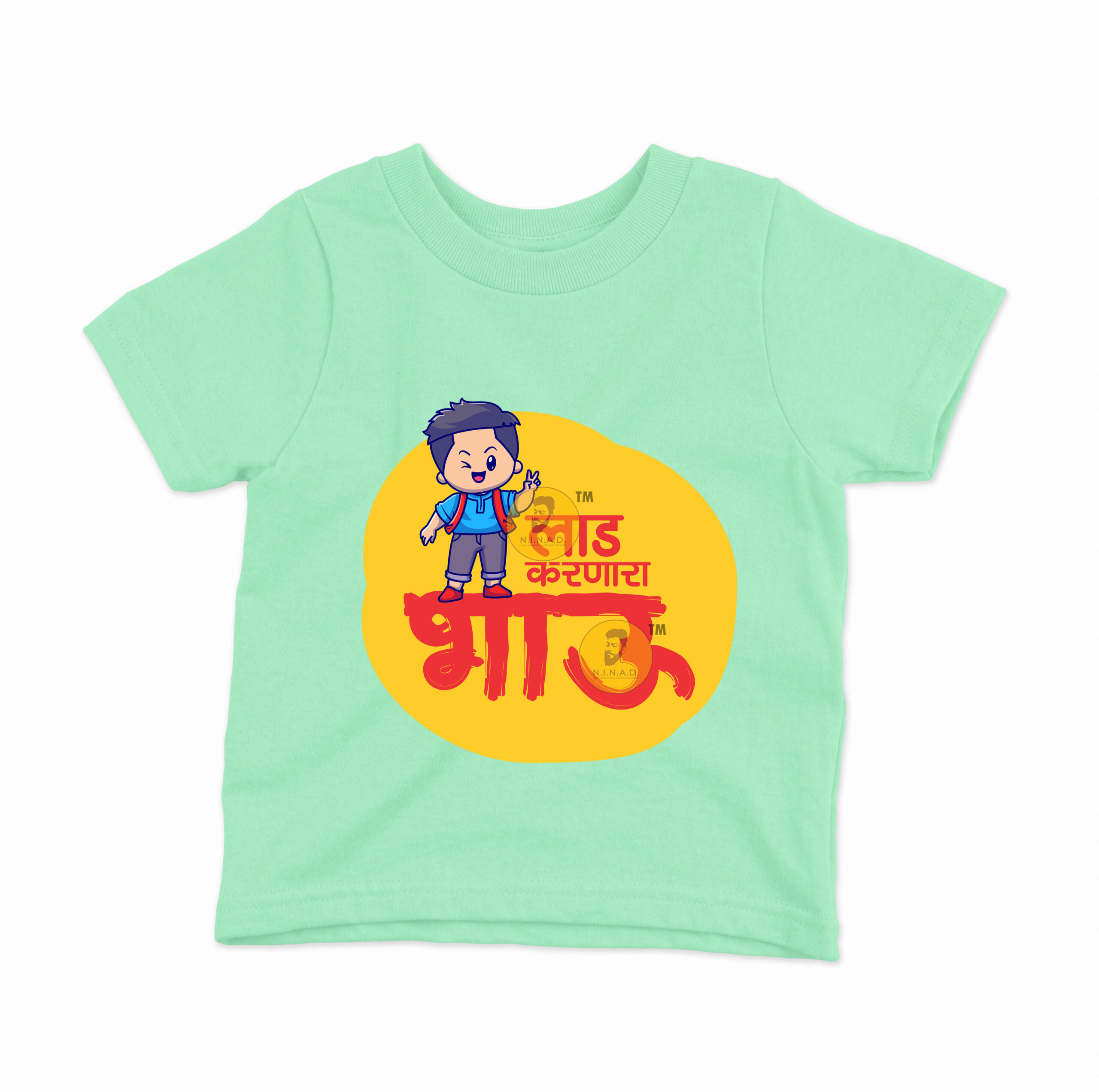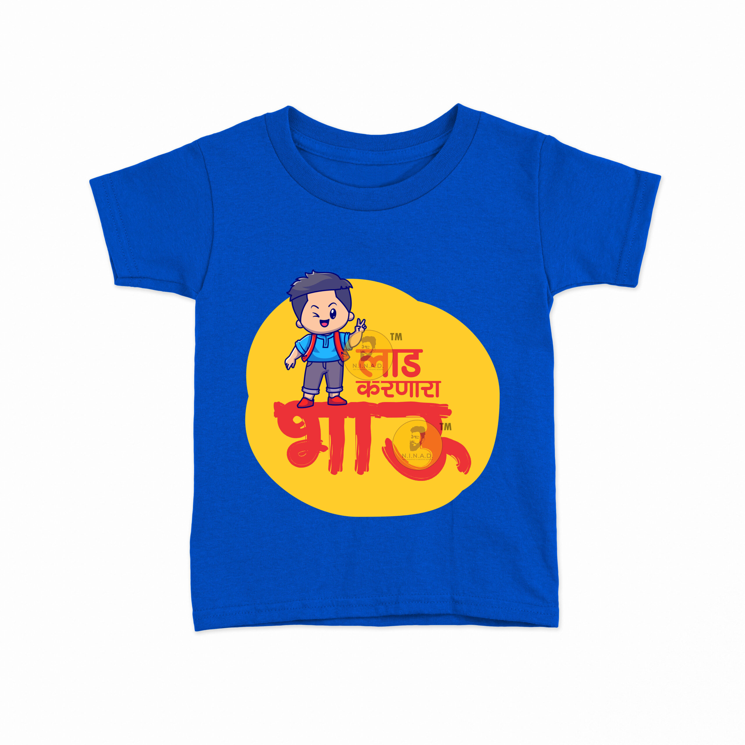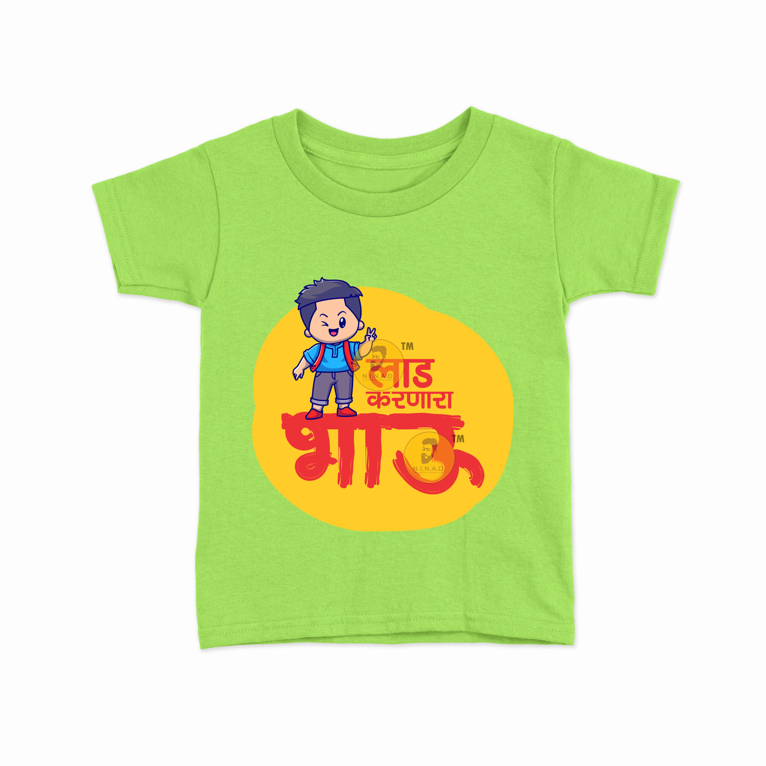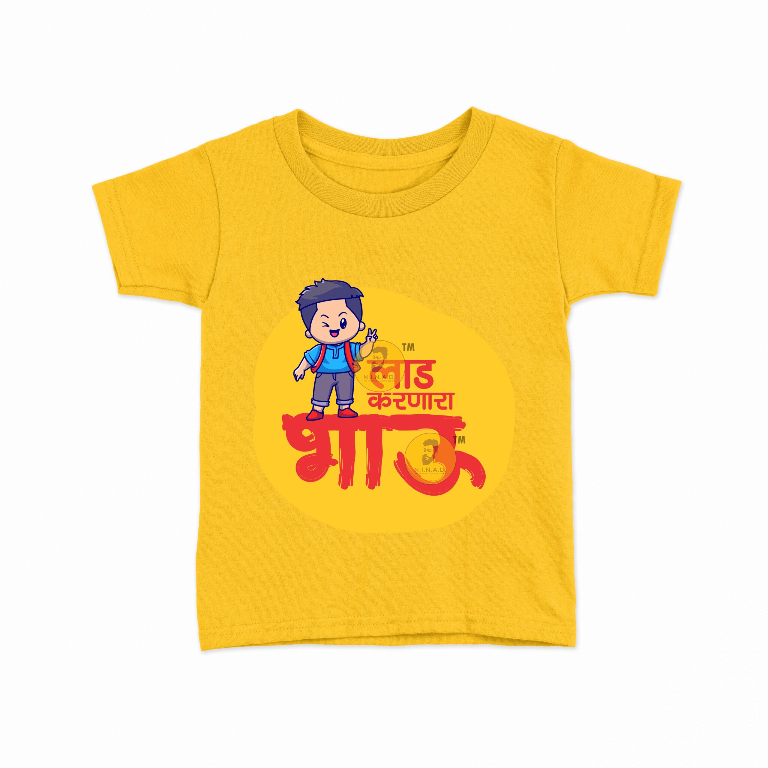 - Fun “Laad Karnara Bhau” Marathi print with cute character design