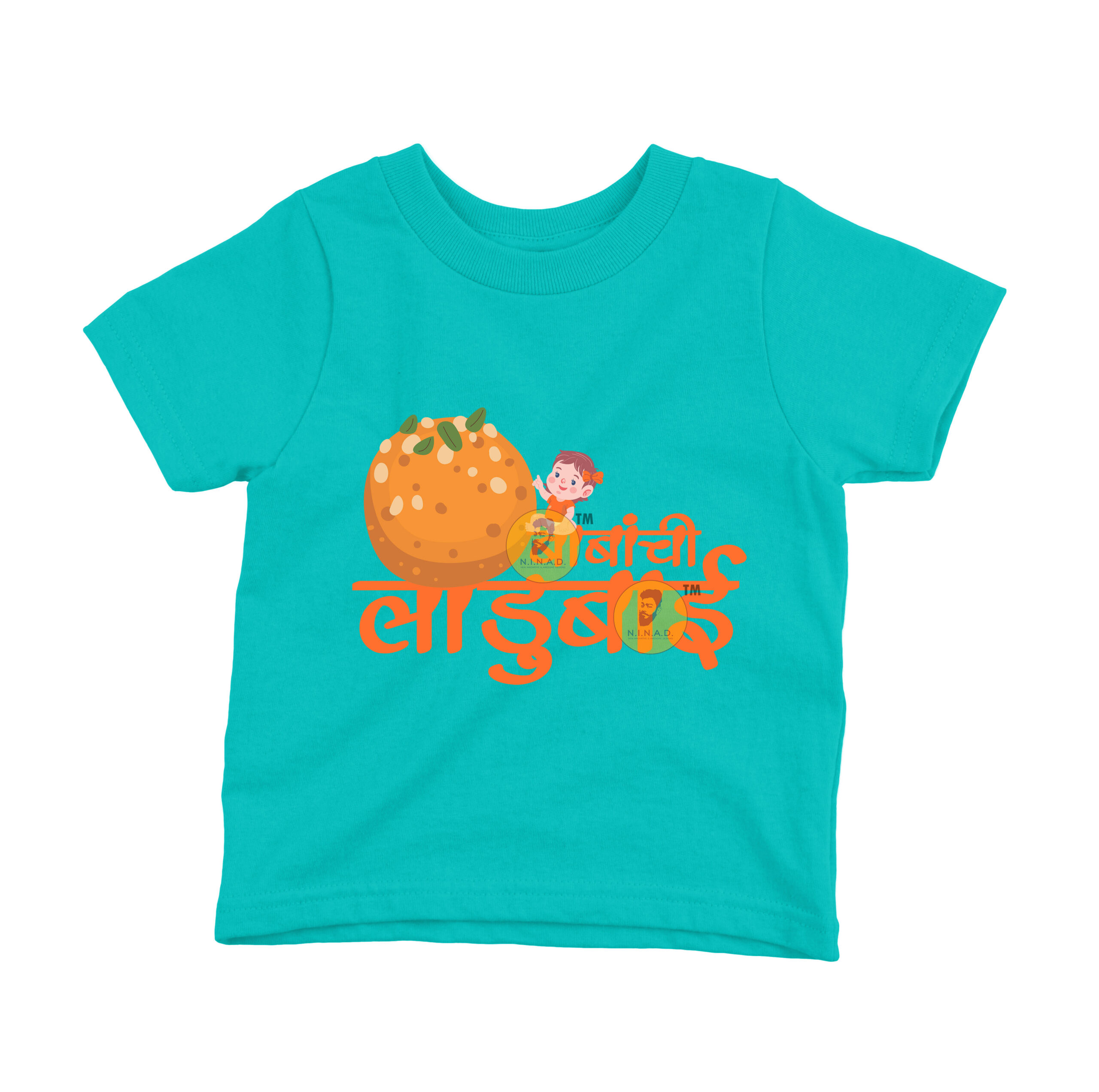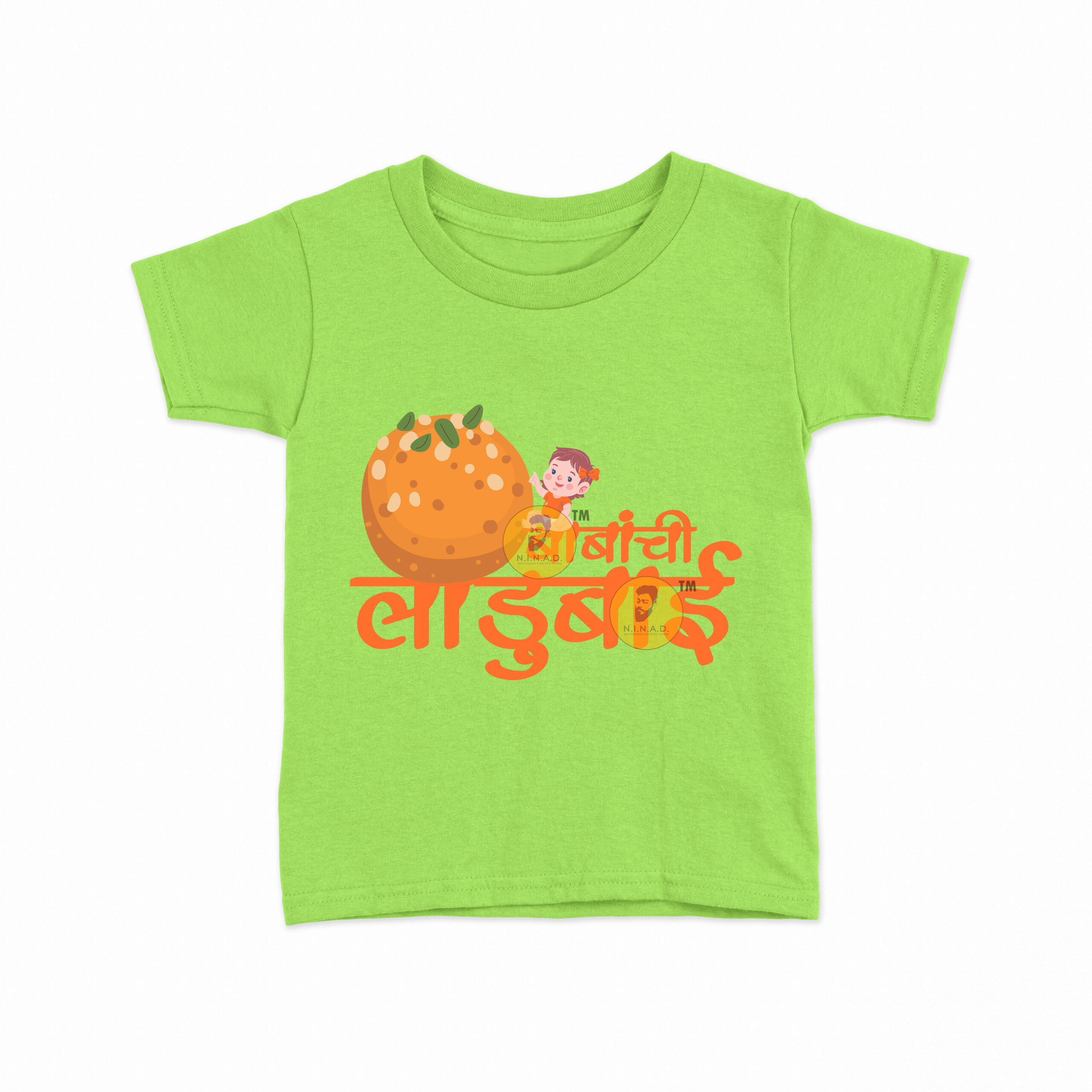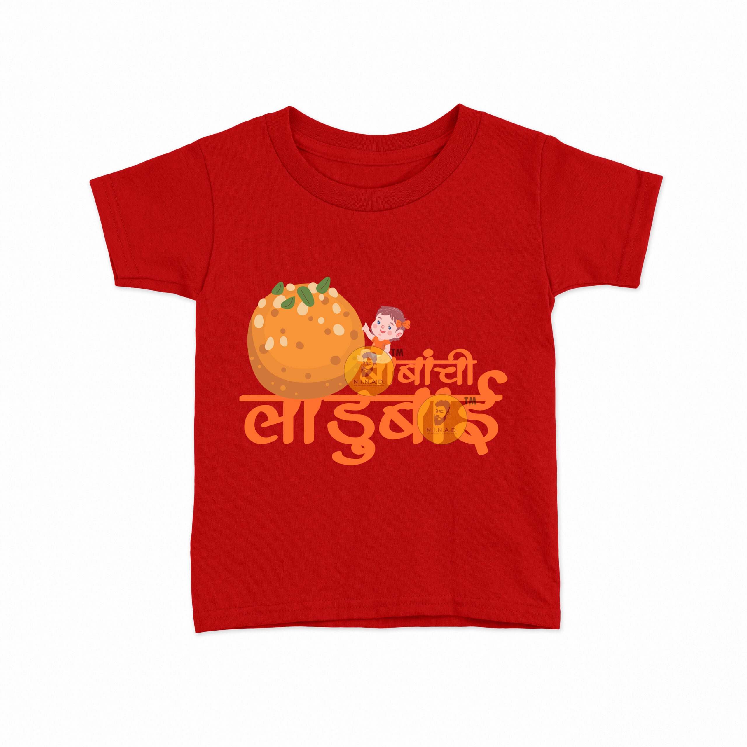 Celebrate the sweetness of tradition with our बाबांची लाडुबाई kids’ T-shirt! Featuring an adorable illustration of a child with a big Ladoo, this design highlights the Marathi cultural flavor in the cutest way. A perfect pick for little ones who bring joy, laughter, and endless happiness to the family.