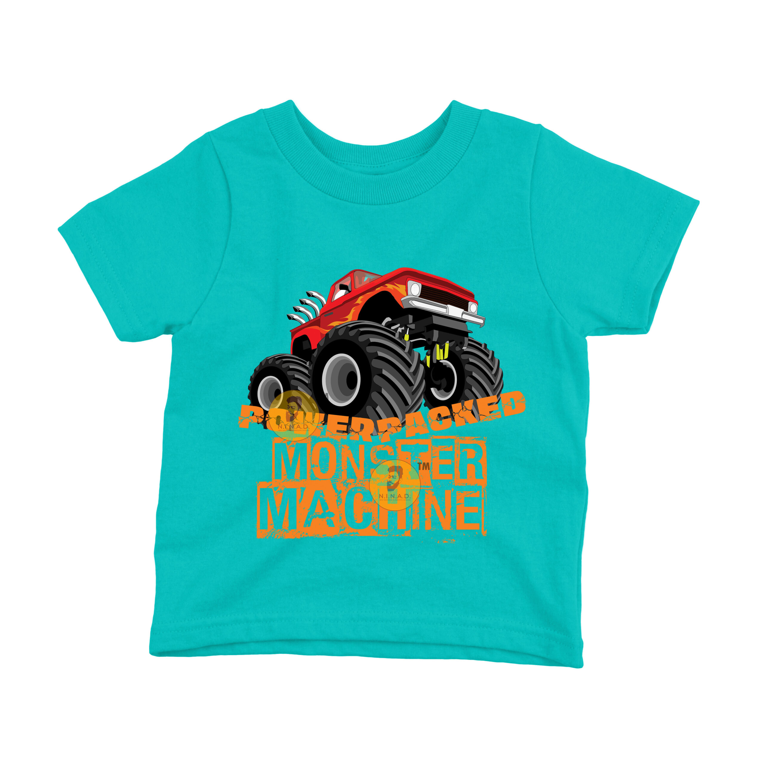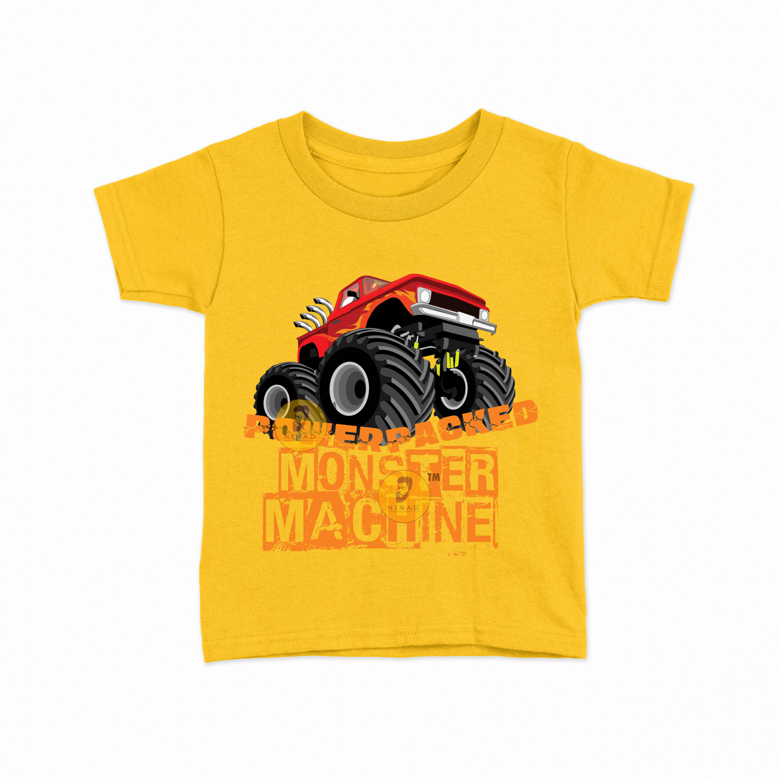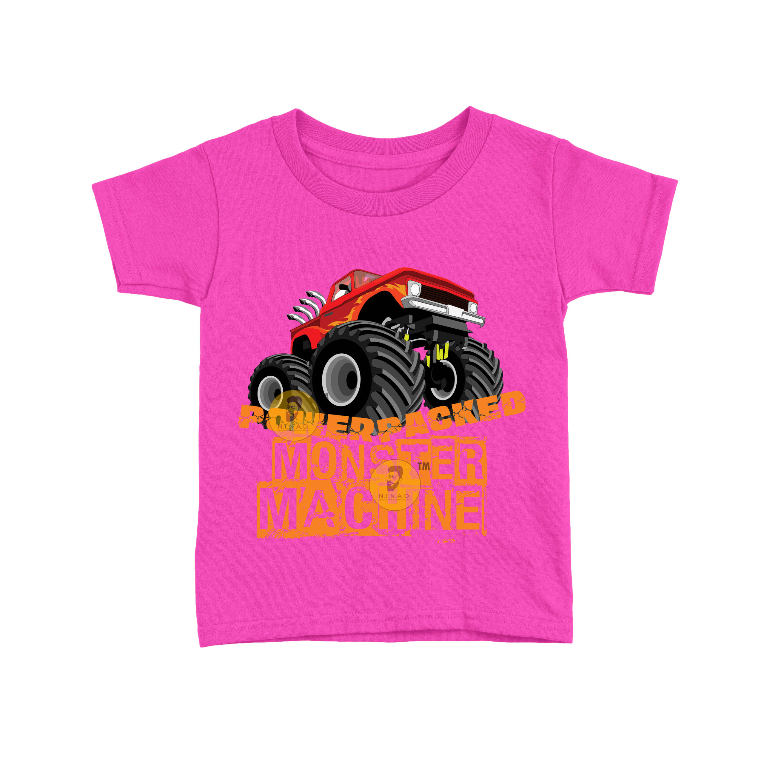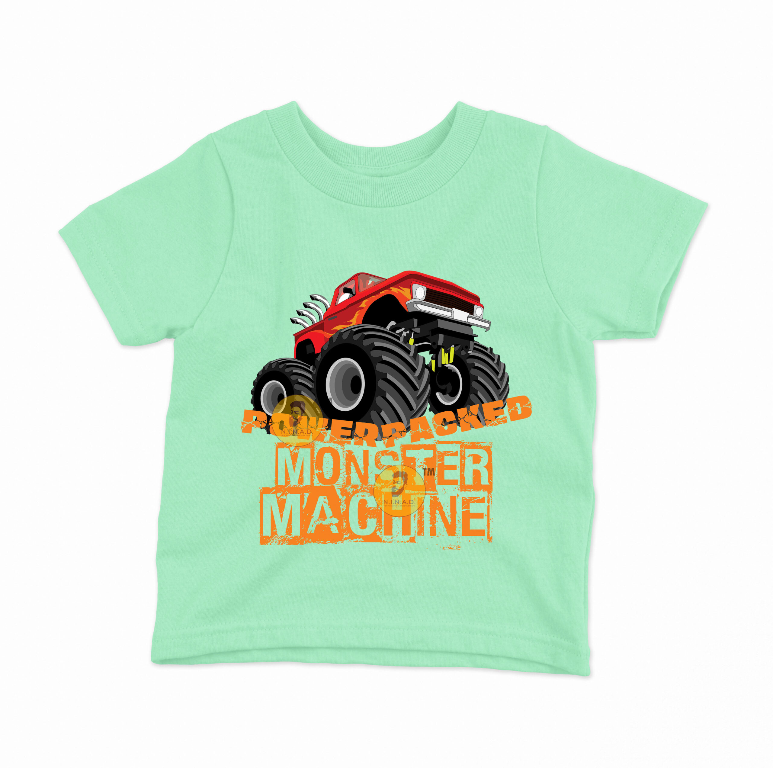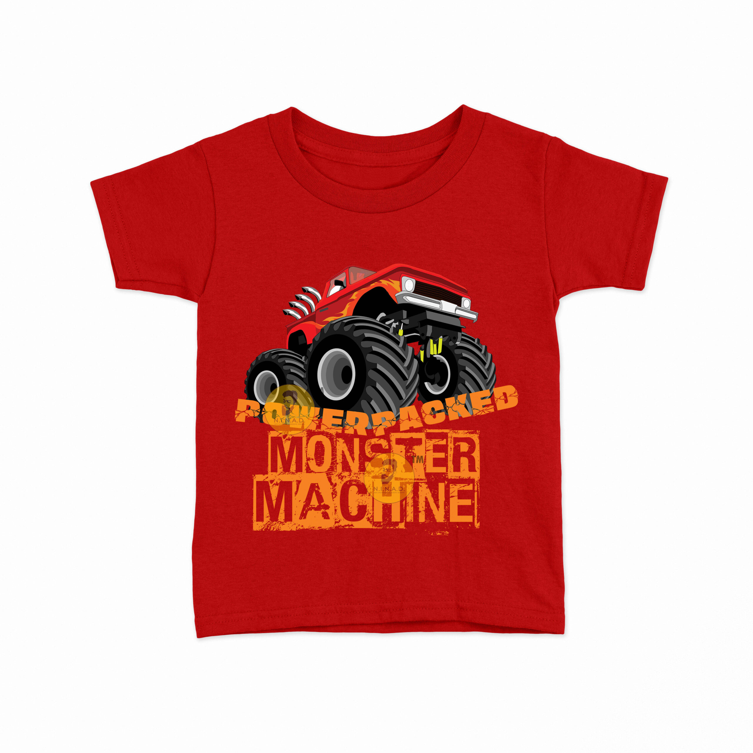 This eye-catching T-shirt features a bold Monster Truck graphic in bright red with oversized wheels, capturing the thrill and power of off-road adventure. The energetic typography “Powerpacked Monster Machine” in distressed orange adds to its rugged, action-packed vibe. Perfect for kids who love speed, trucks, and playful designs, this T-shirt blends comfort with a cool attitude.