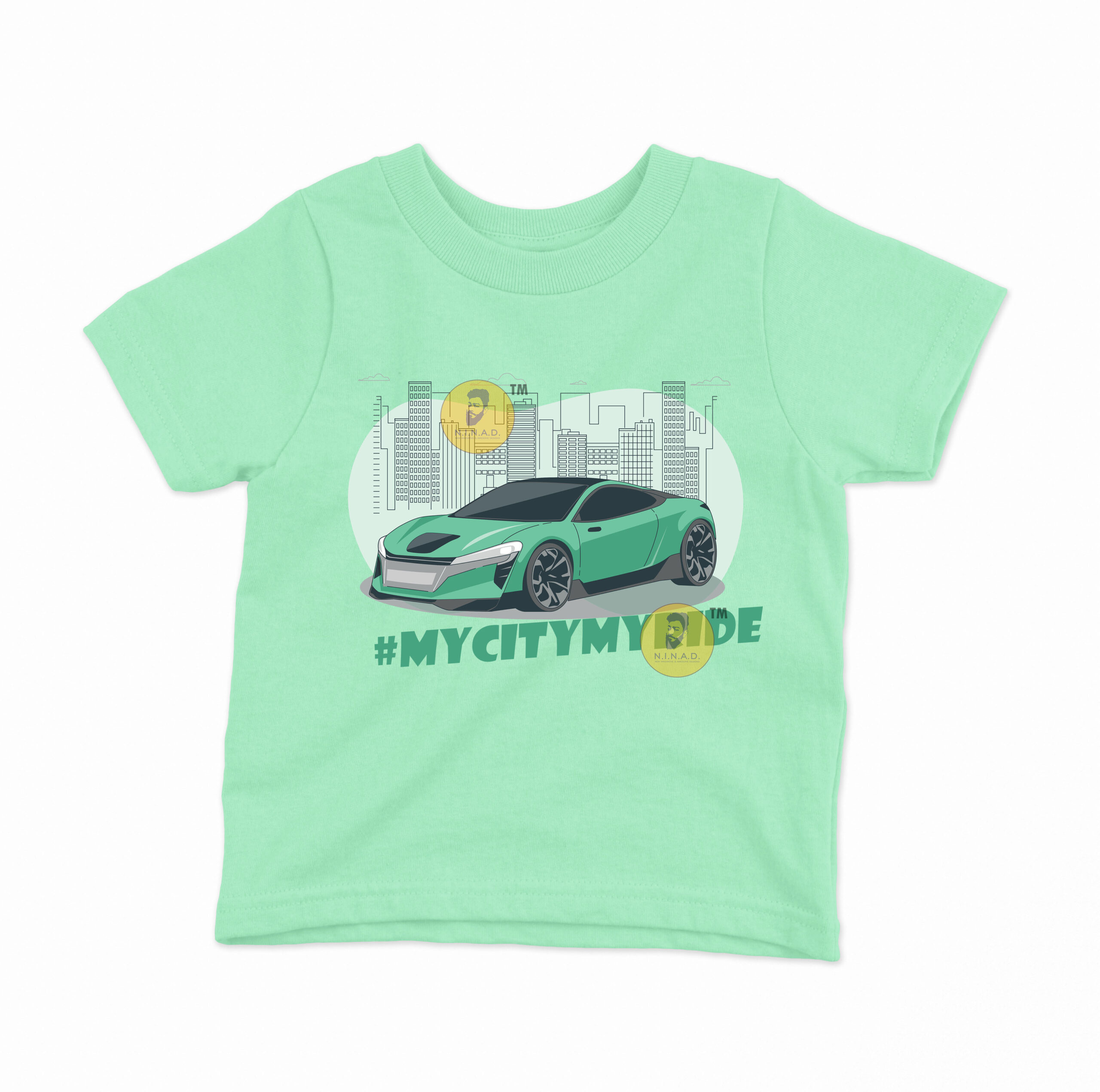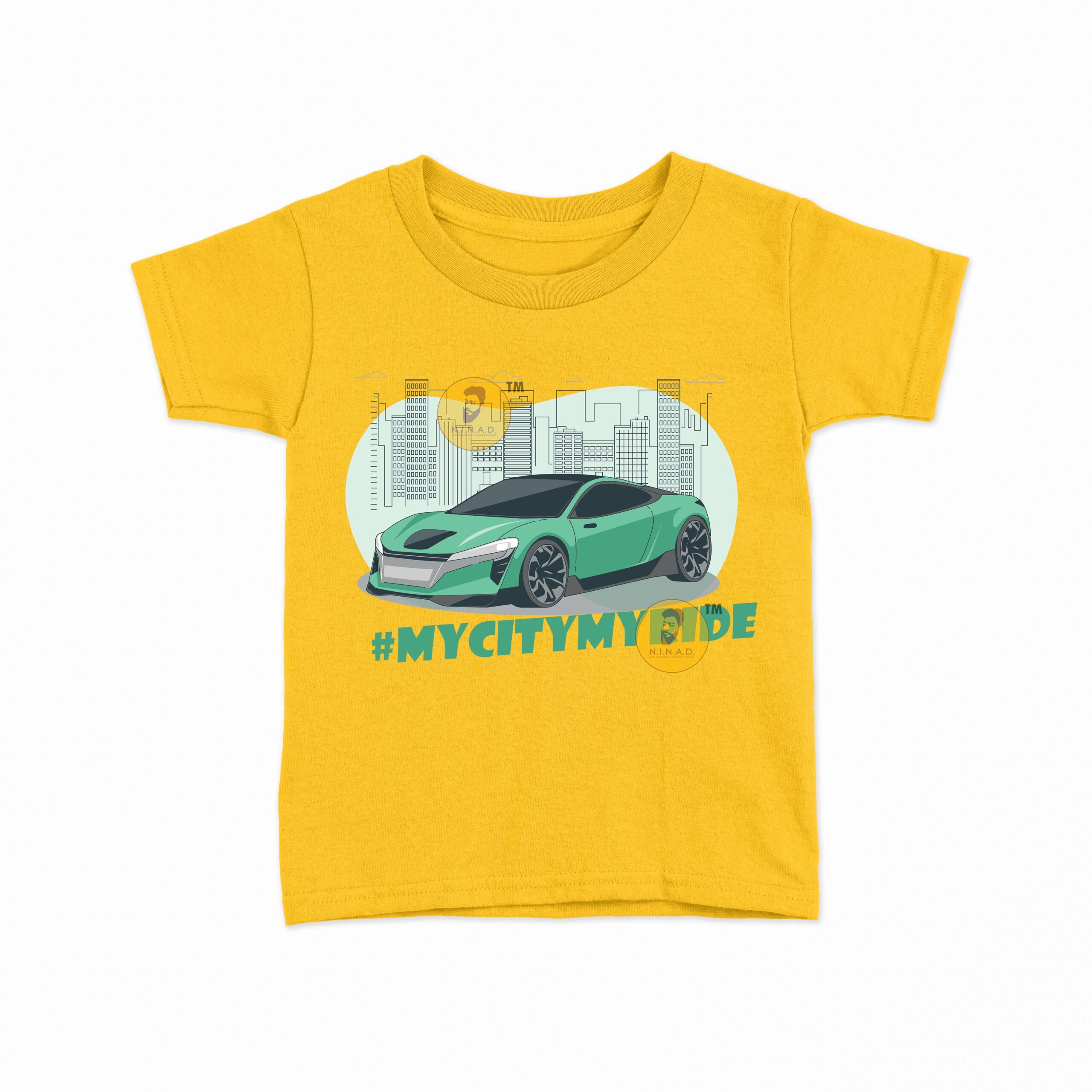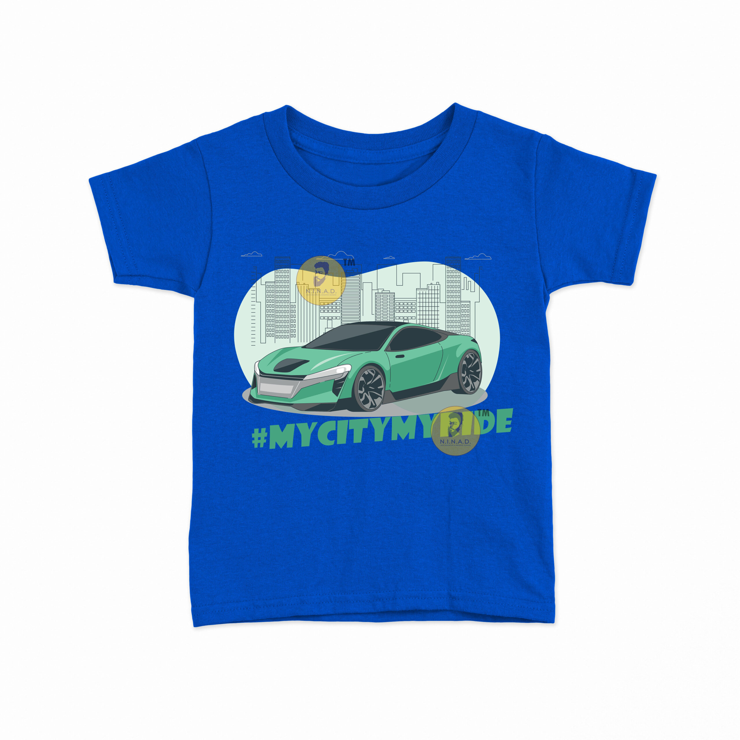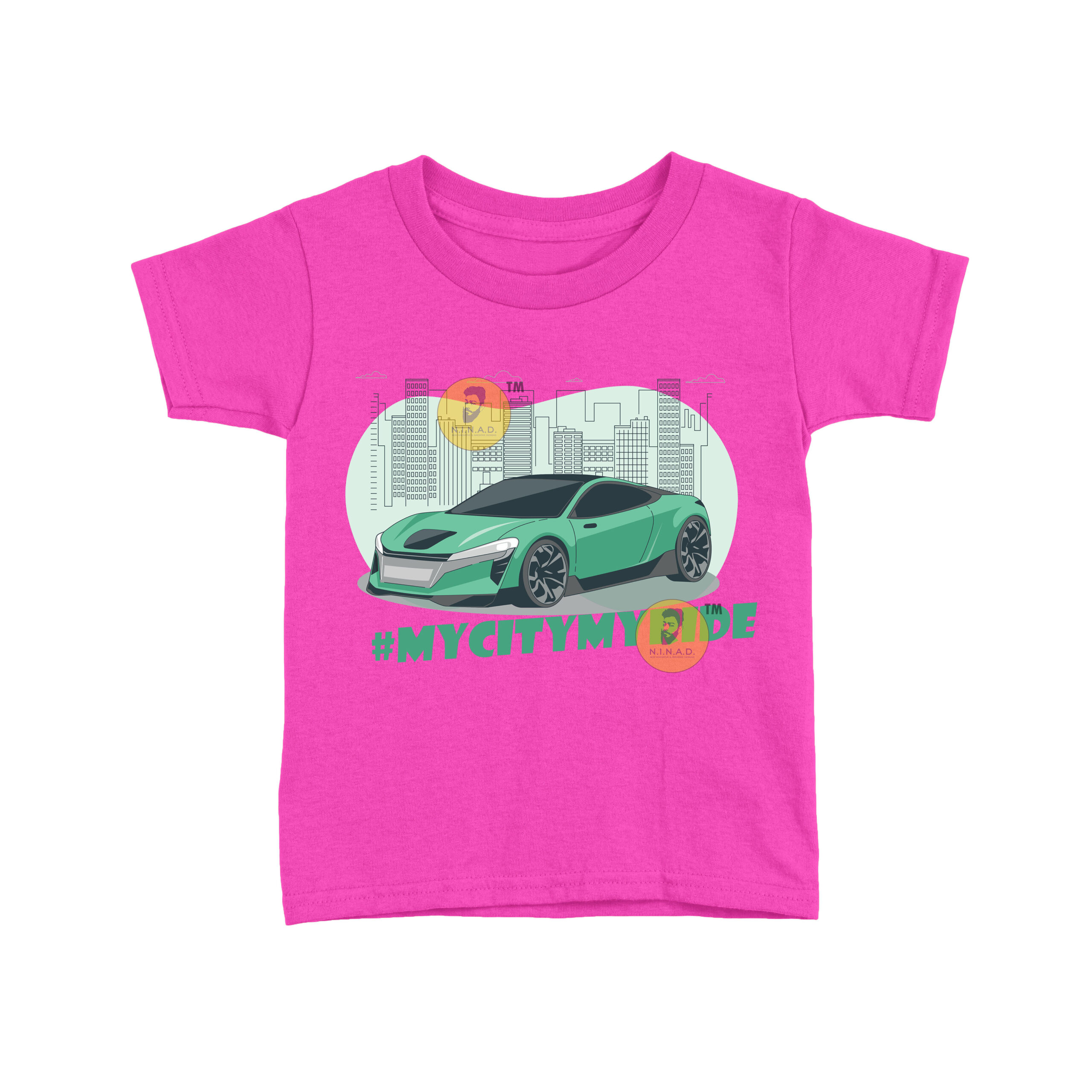Let your little one ride in style with this vibrant T-shirt featuring a sleek sports car graphic set against a bold city skyline. The trendy hashtag “#MYCITYMYRIDE” adds an urban edge, making it perfect for young car lovers who dream of speed and adventure. The bright fabric makes the design pop, while ensuring comfort all day long.