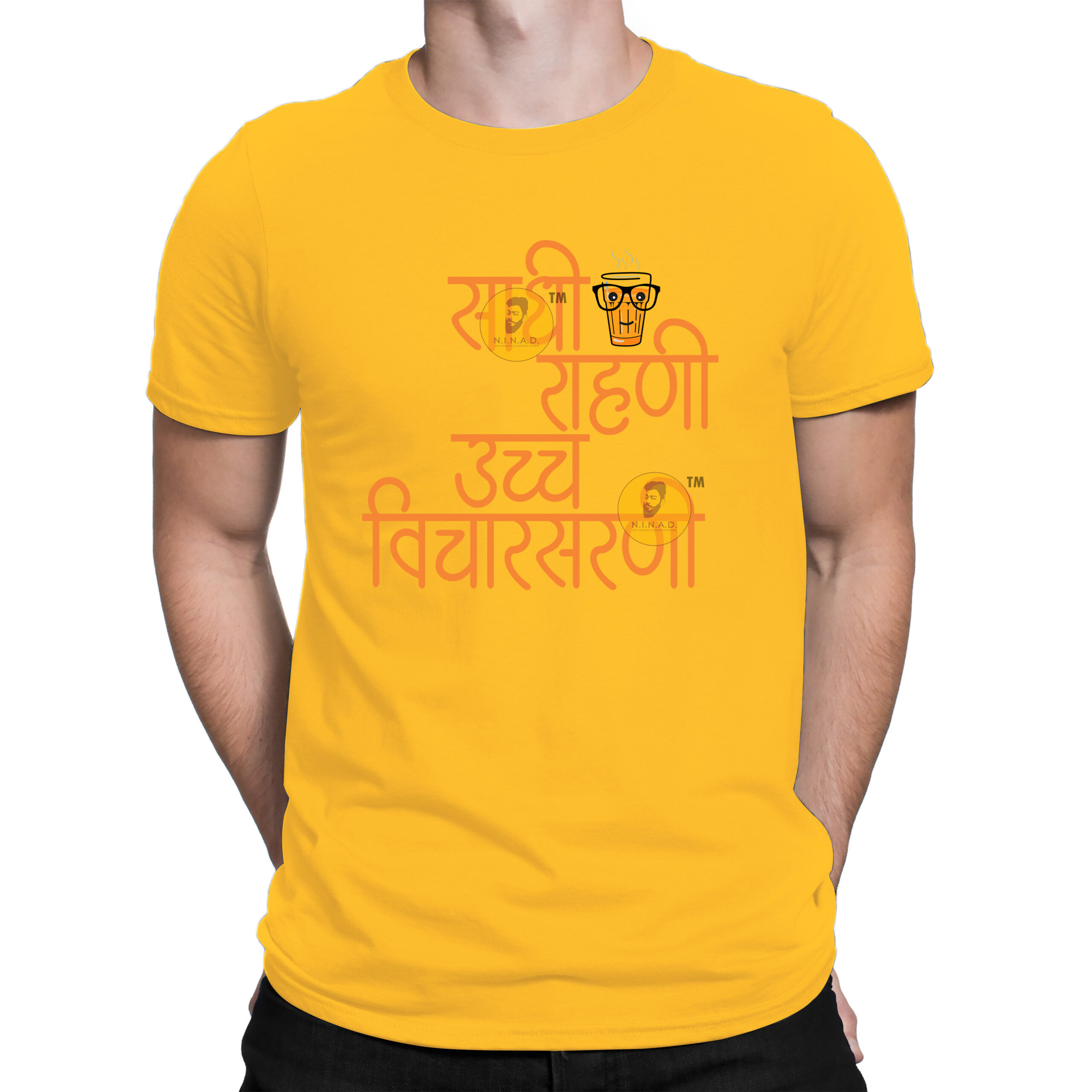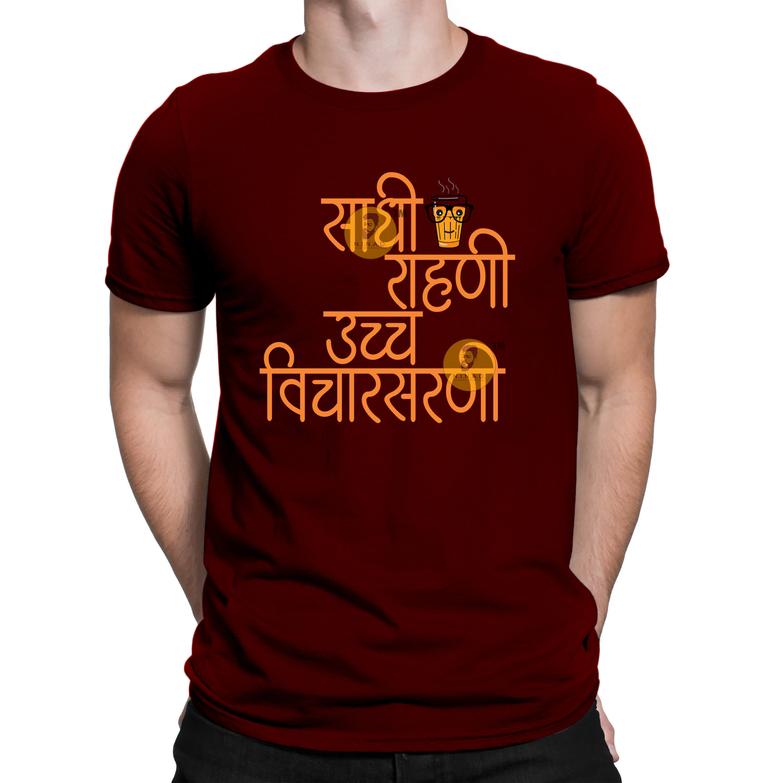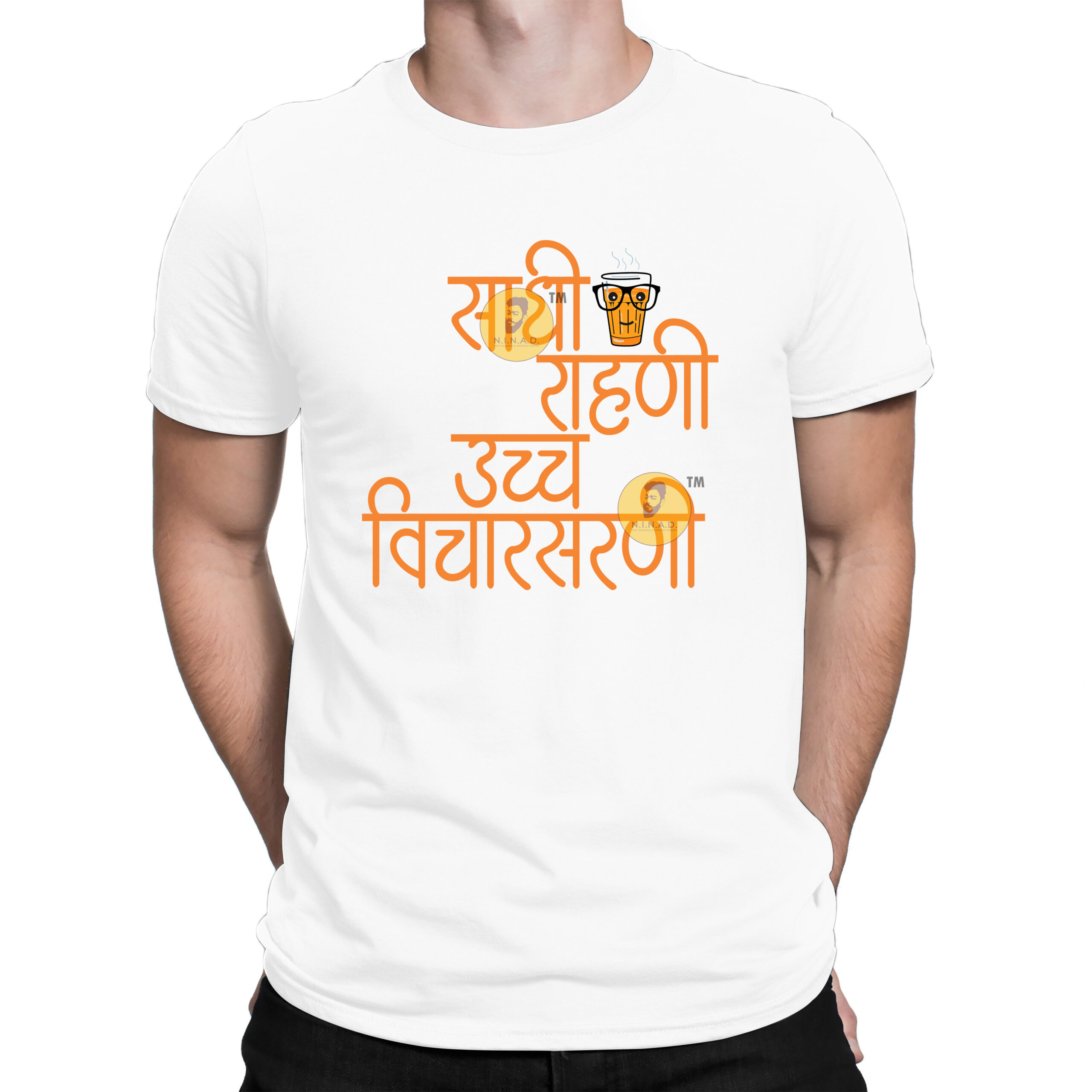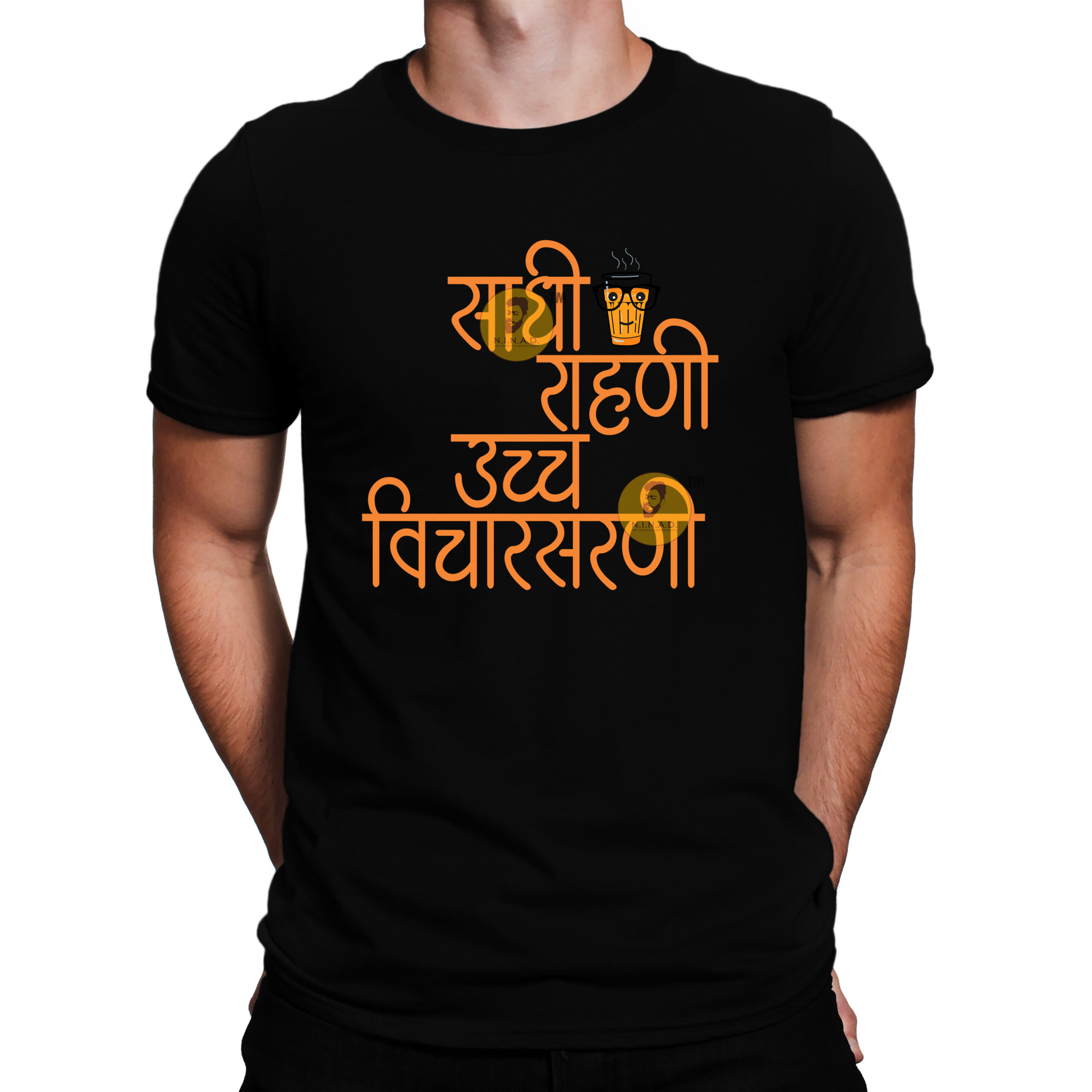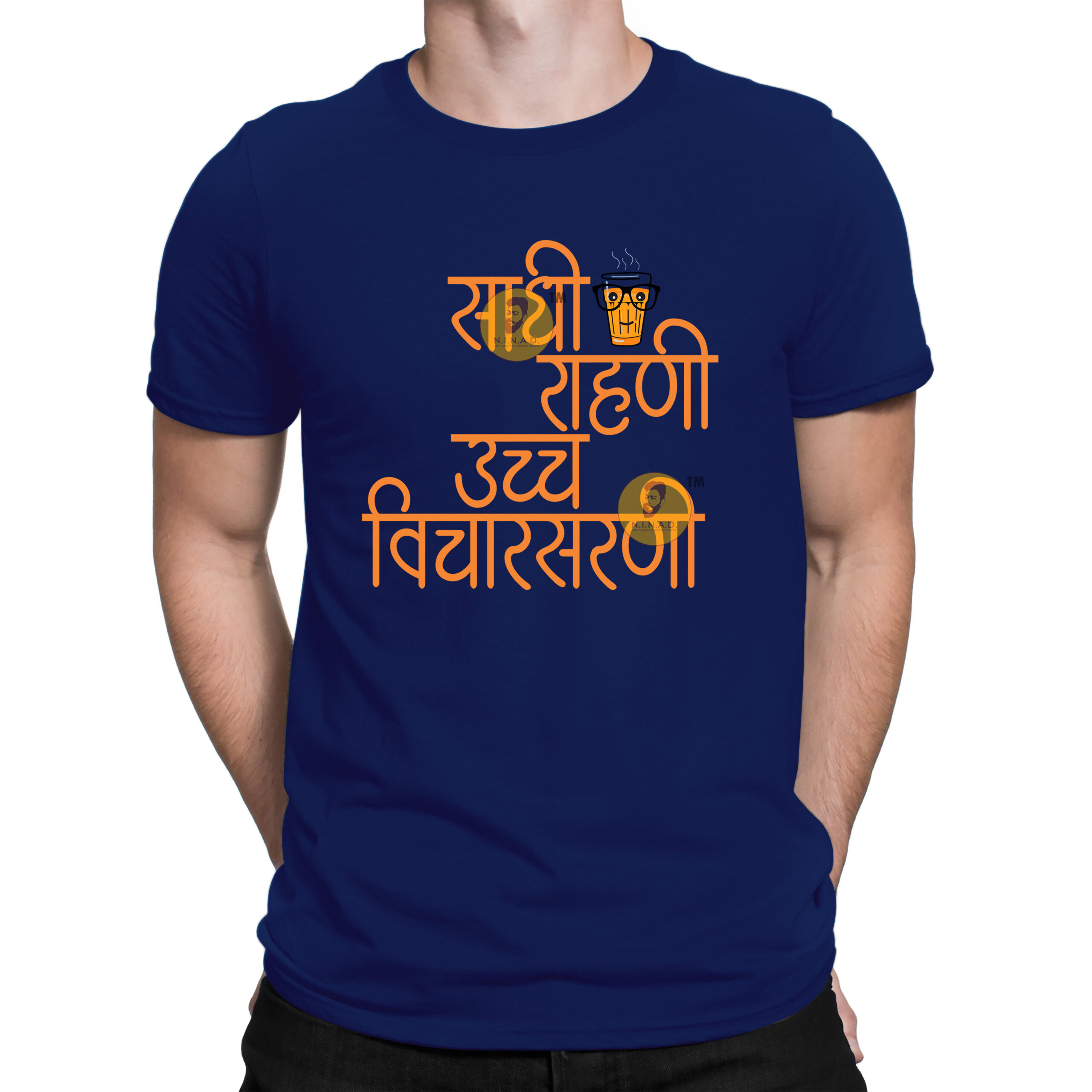 Celebrate the beauty of simplicity and the power of thought with this classic Marathi quote tee: “साधी राहणी, उच्च विचारसरणी” – meaning “Simple living, high thinking.”