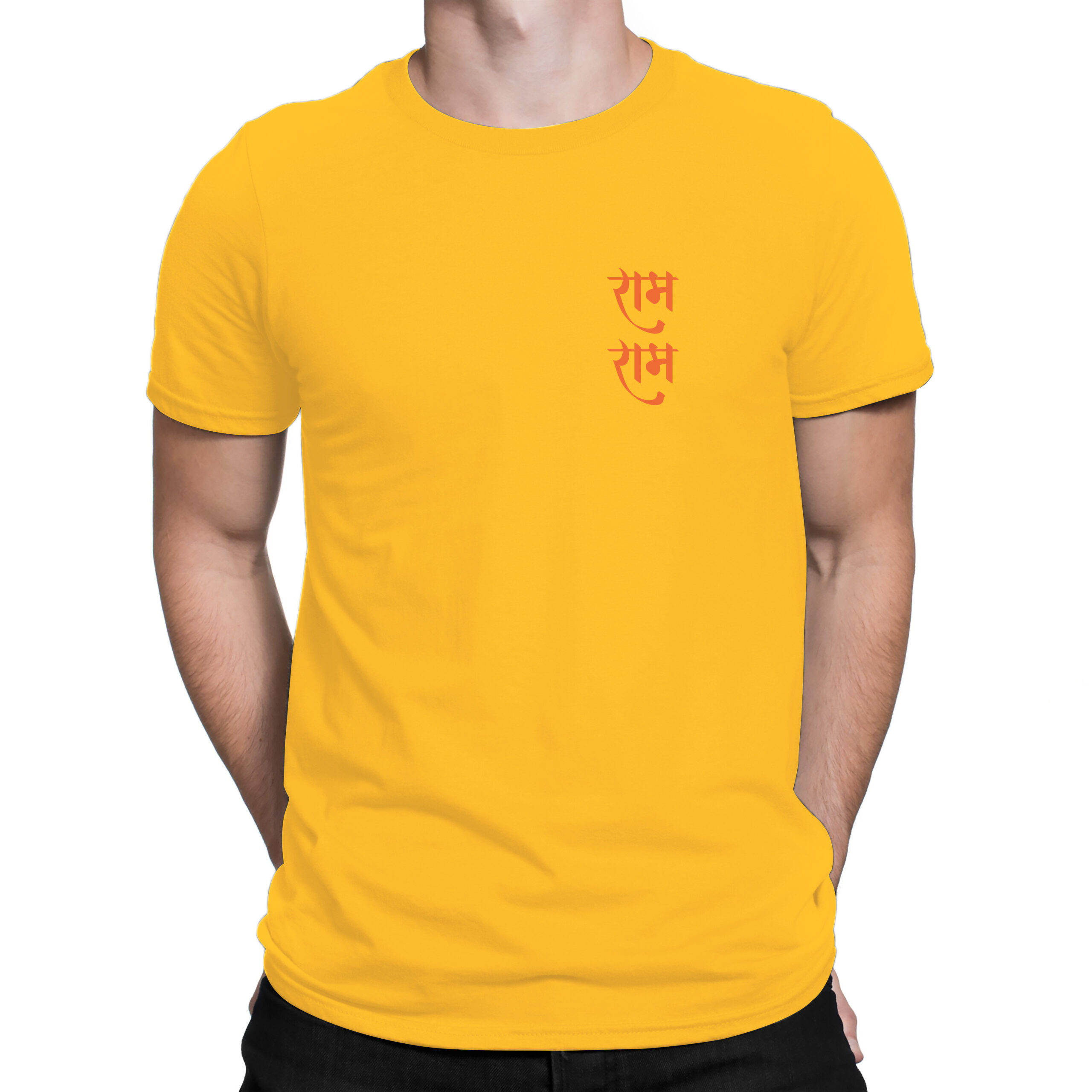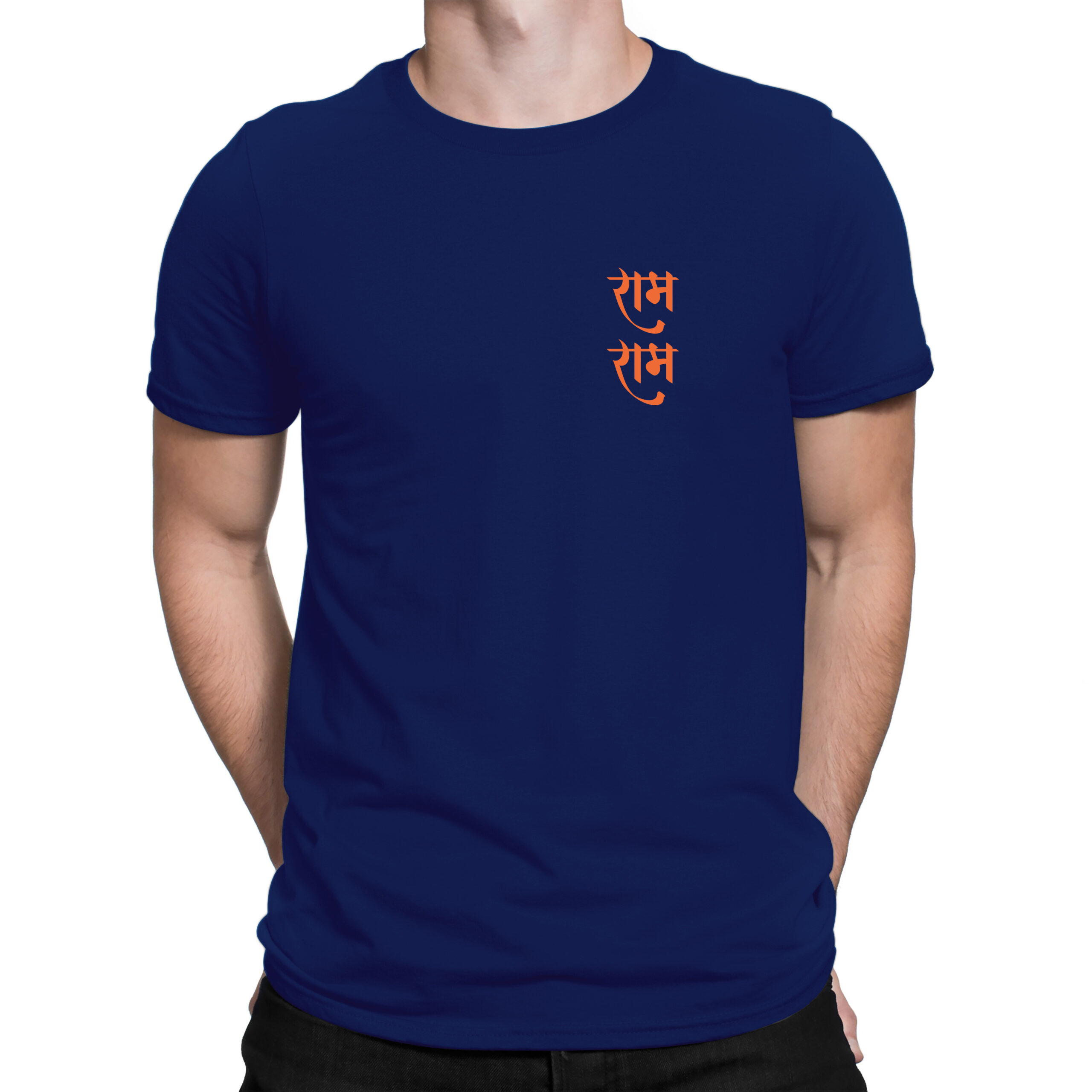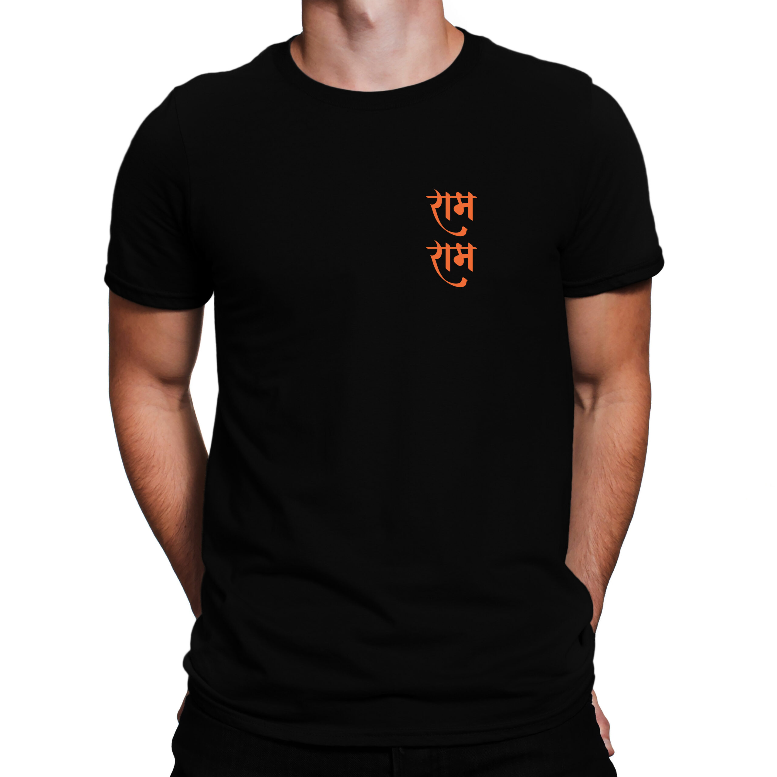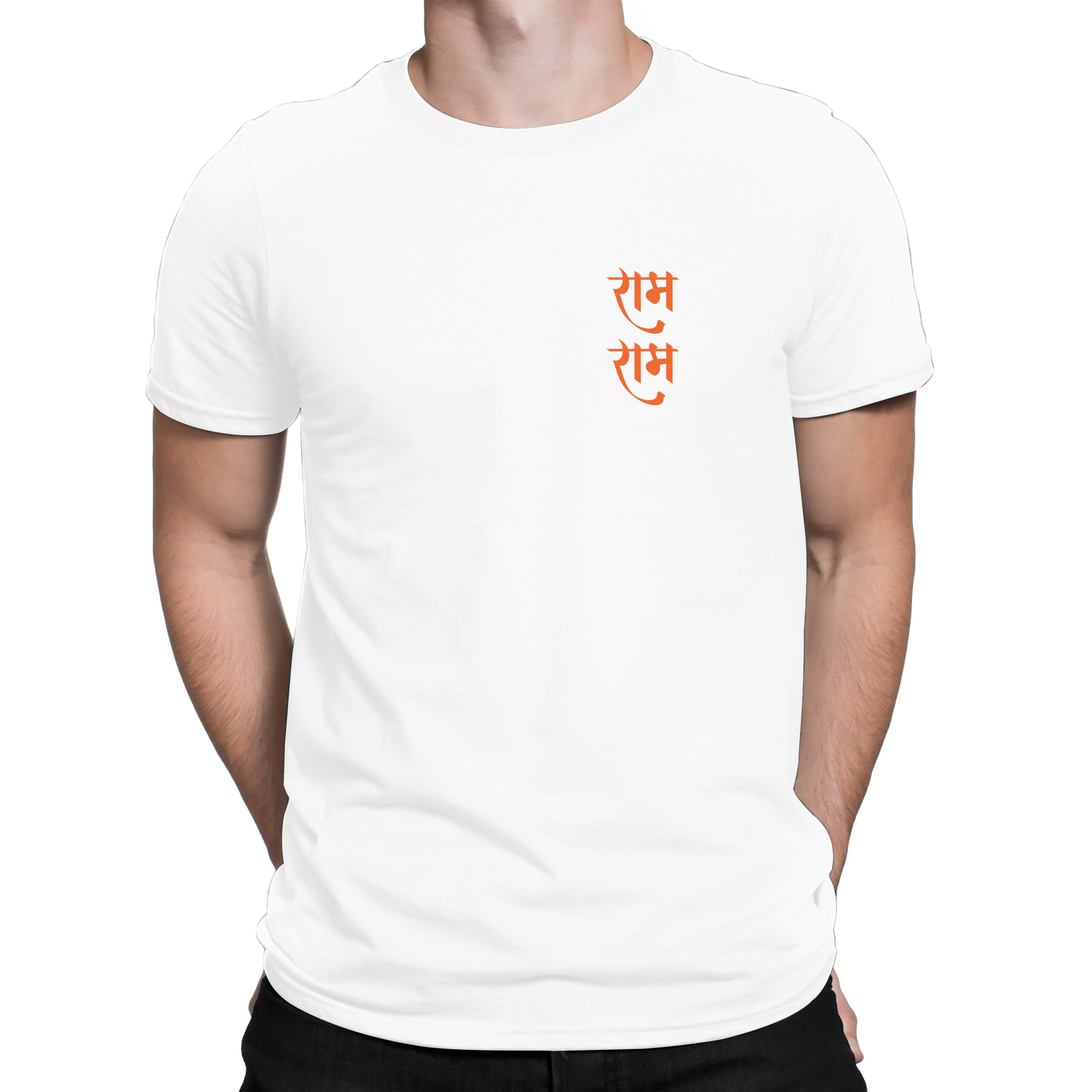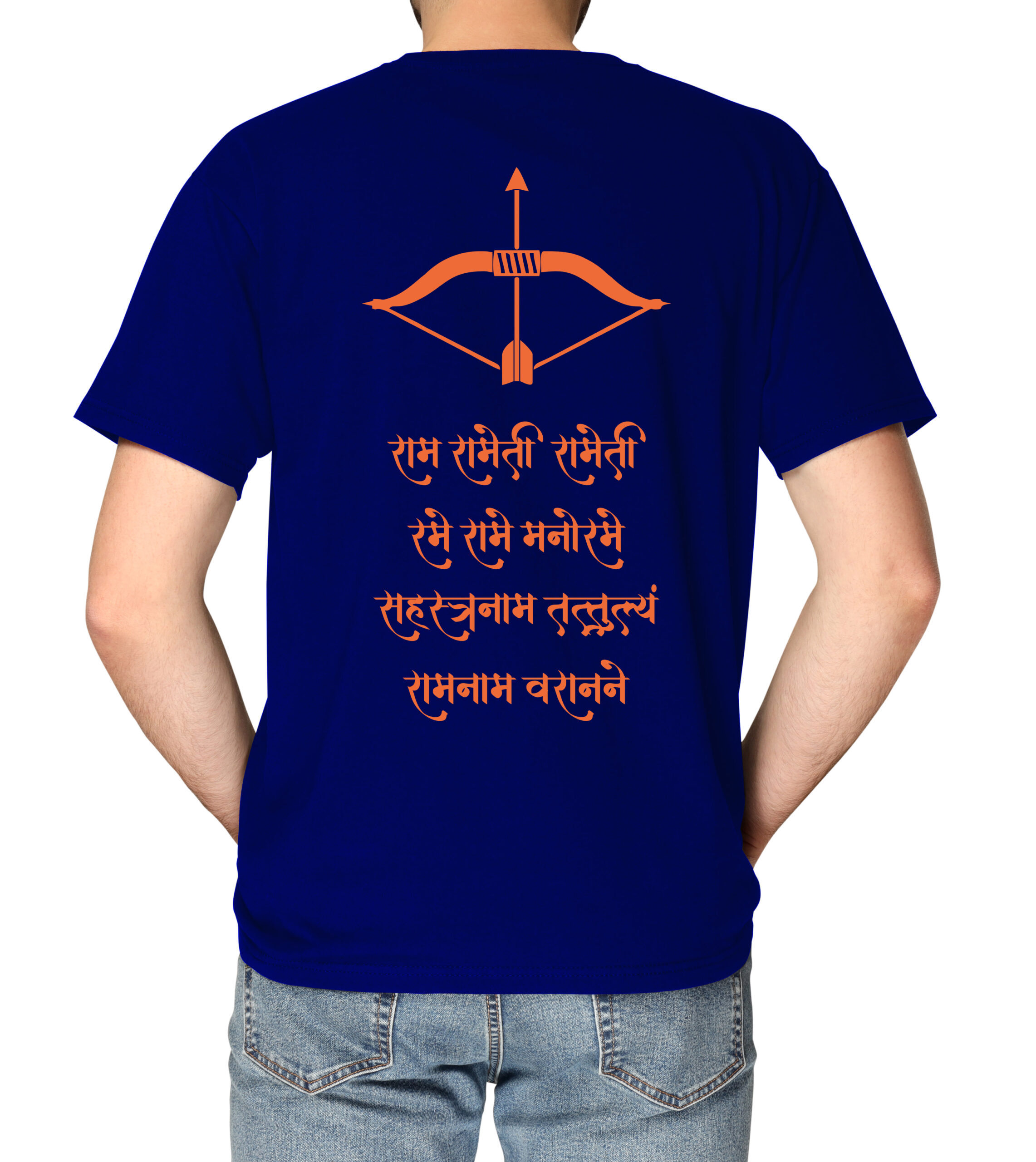 Our “Ram Naam – The Divine Chant Edition” T-shirt is an ode to the eternal strength and serenity of Lord Rama. The minimalist front design features the sacred chant “राम राम,” symbolizing purity, balance, and devotion.