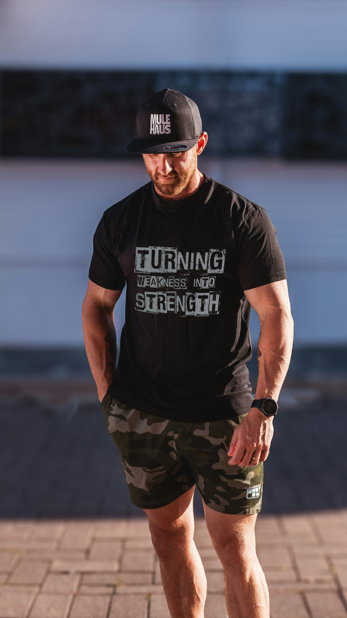 Turning Weakness into Strength – Grit & Grind Motivational T-Shirt