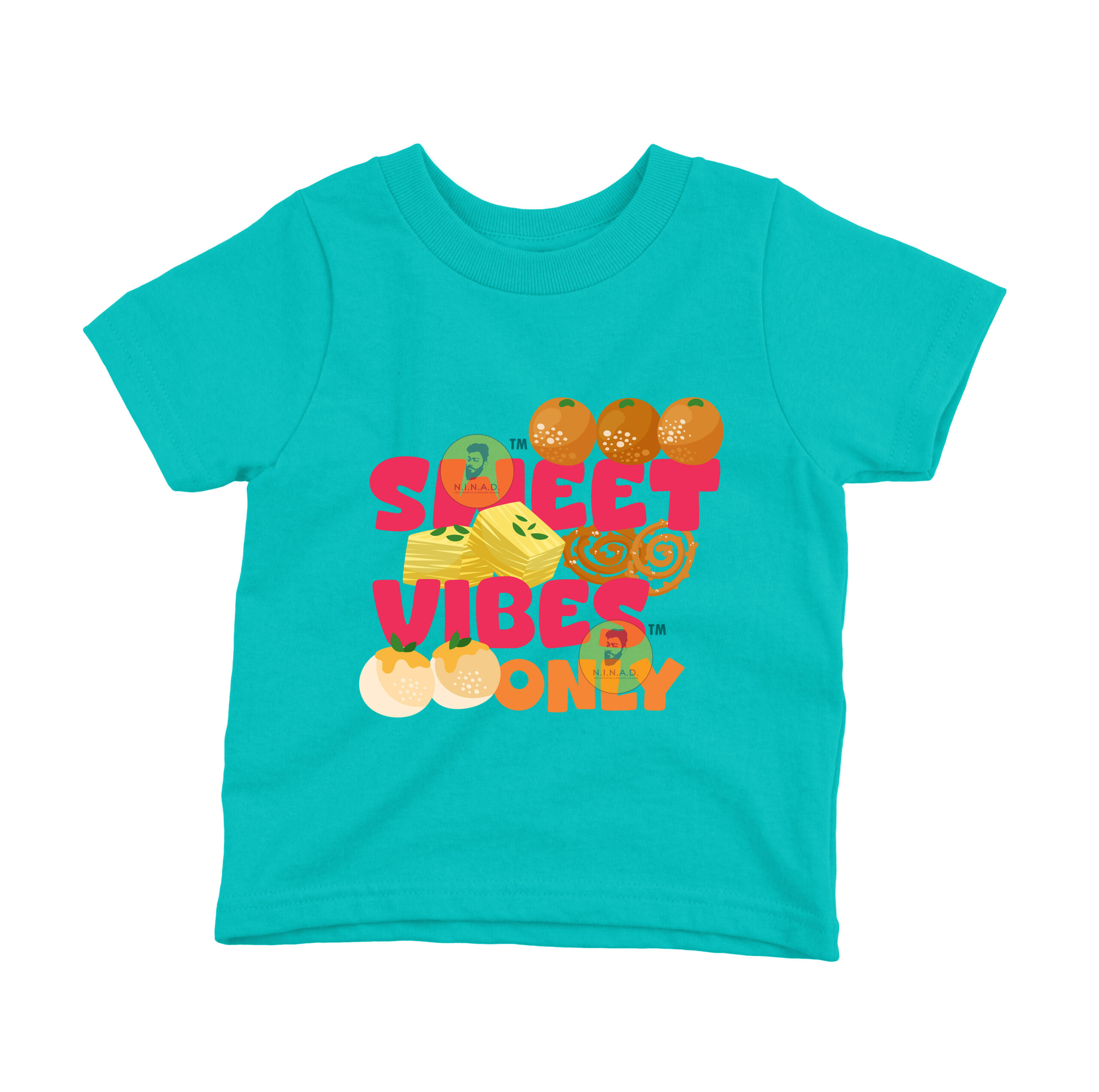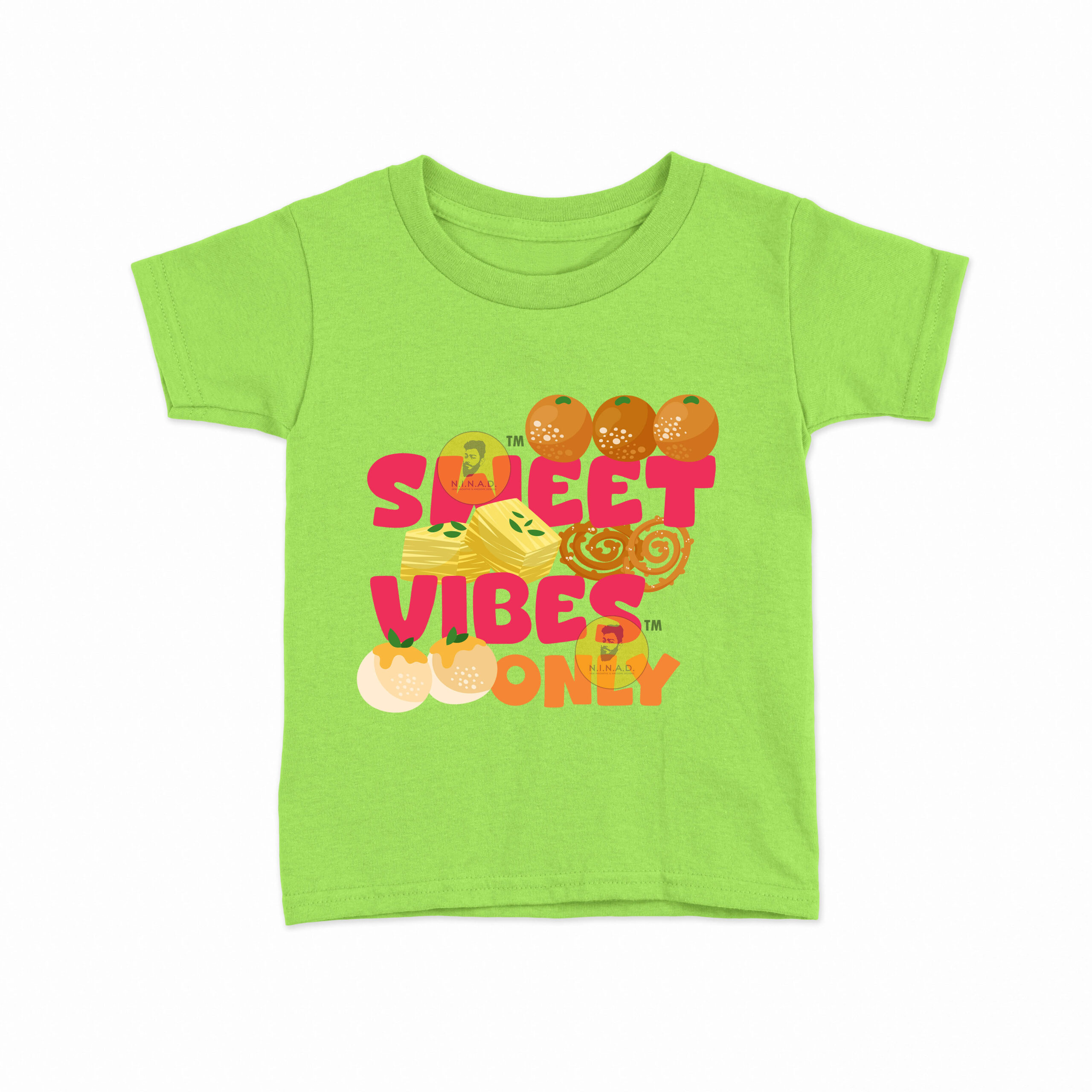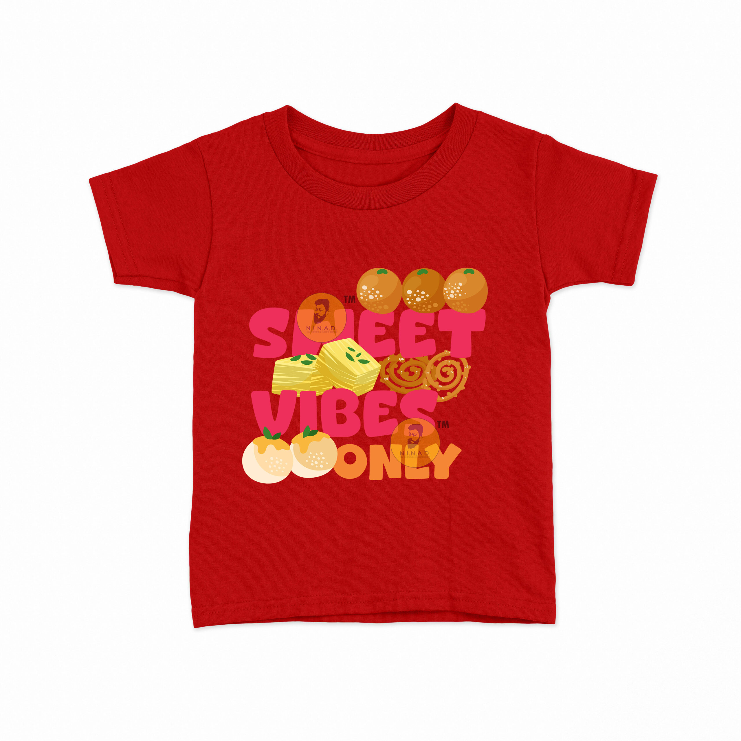 Bring in the festive cheer with our Sweet Vibes Only kids’ T-shirt! 🍬✨ Inspired by traditional Indian sweets and the joy of celebrations, this playful design adds a dash of sweetness to your little one’s wardrobe. Printed on a bright color base, the bold typography and fun mithai graphics make it the perfect outfit for festive gatherings, casual outings, or gifting.