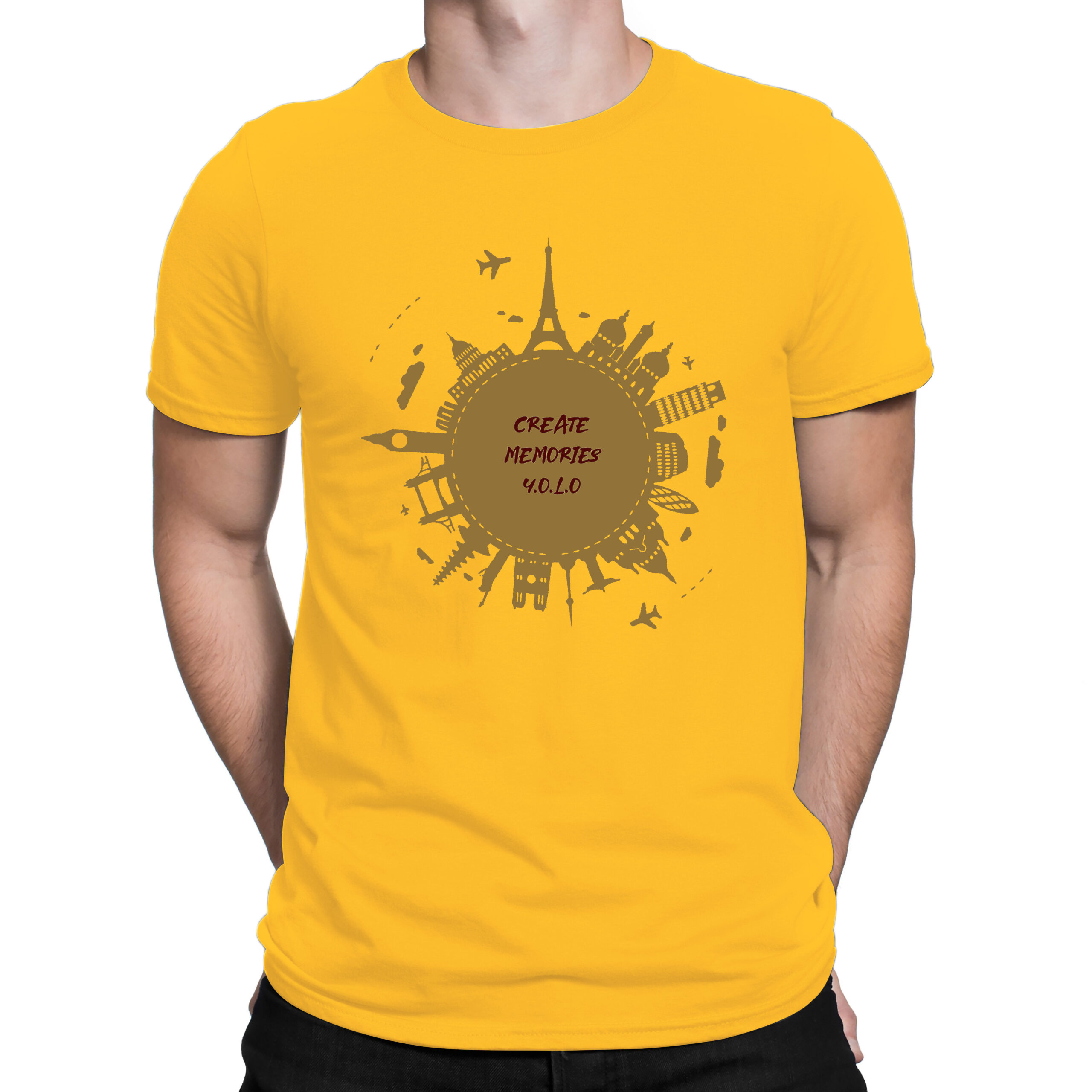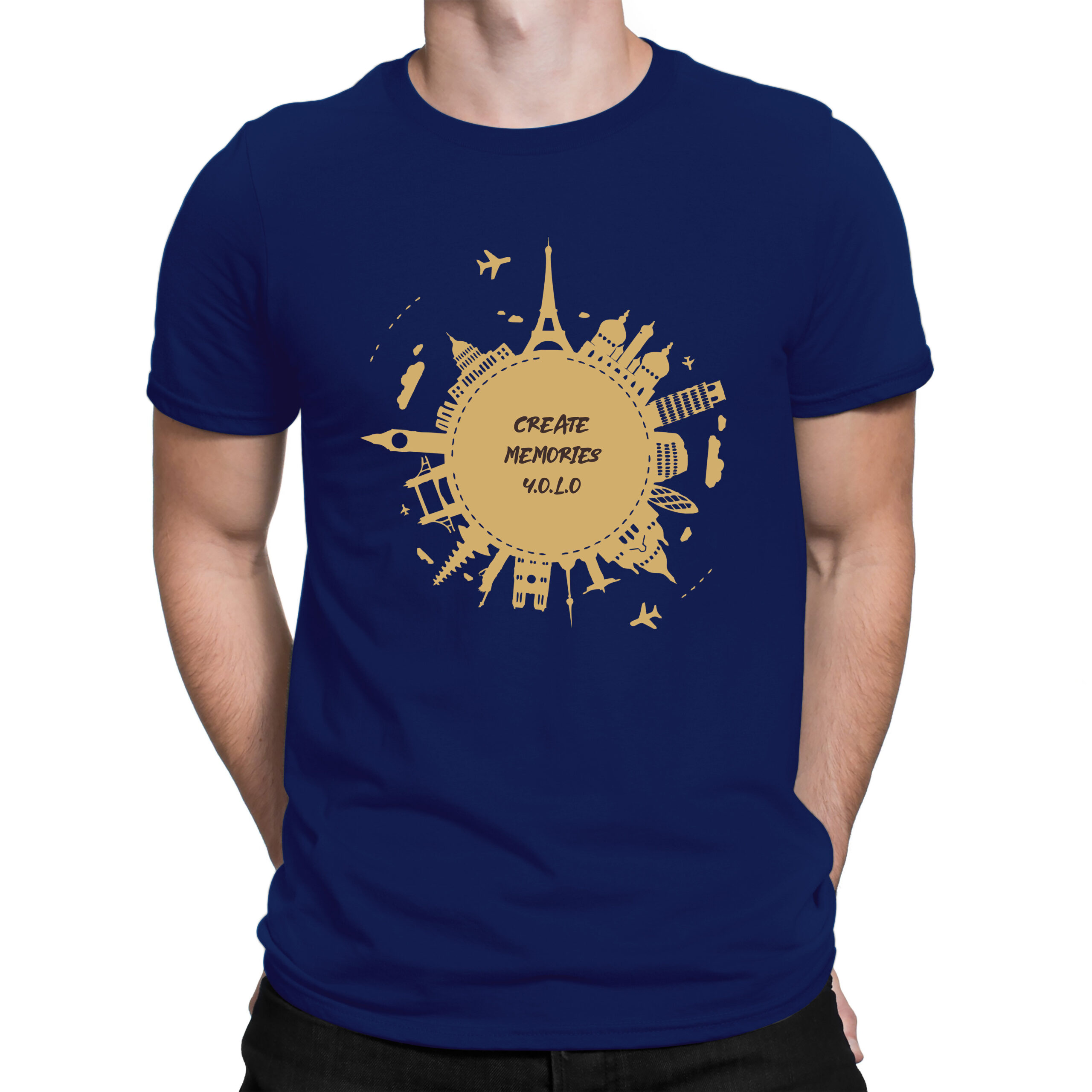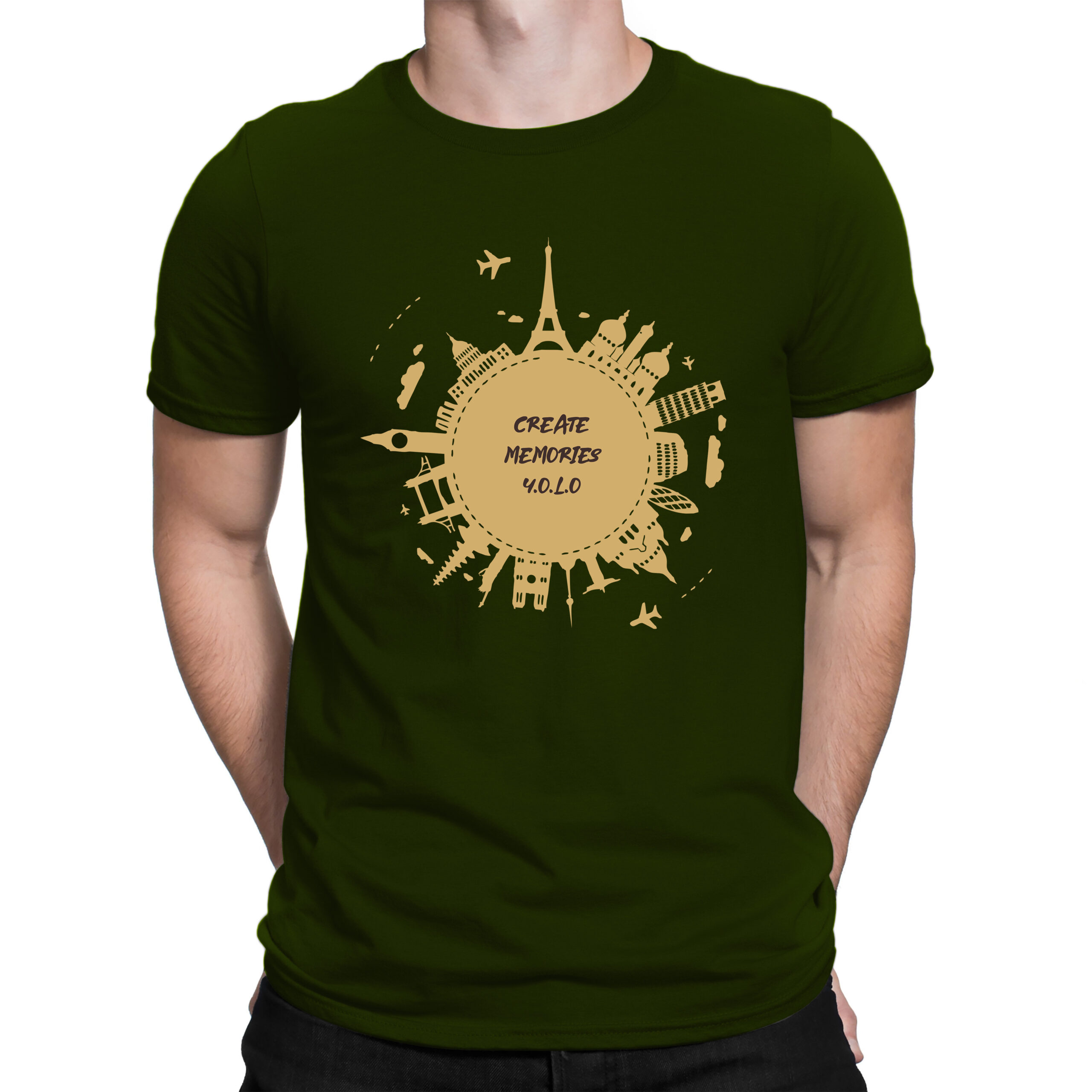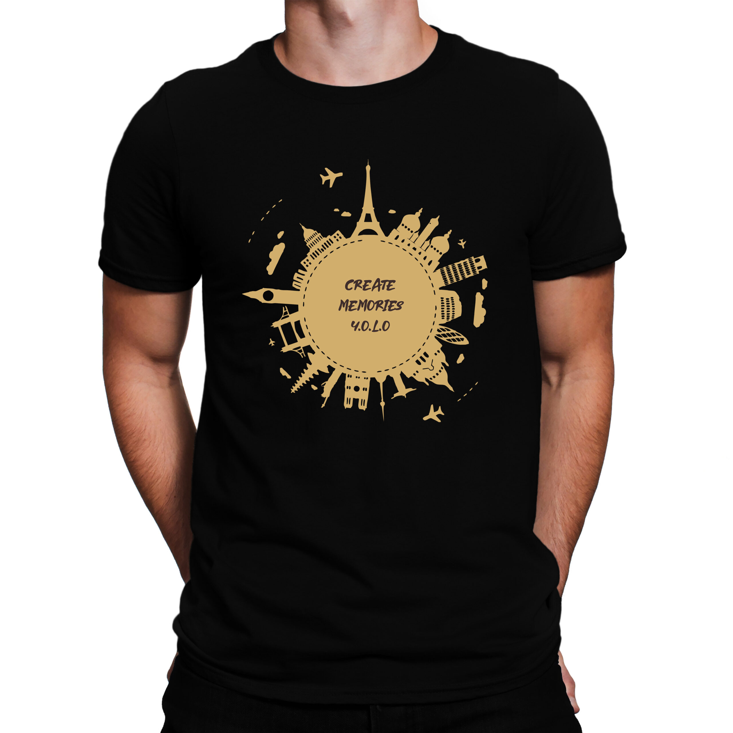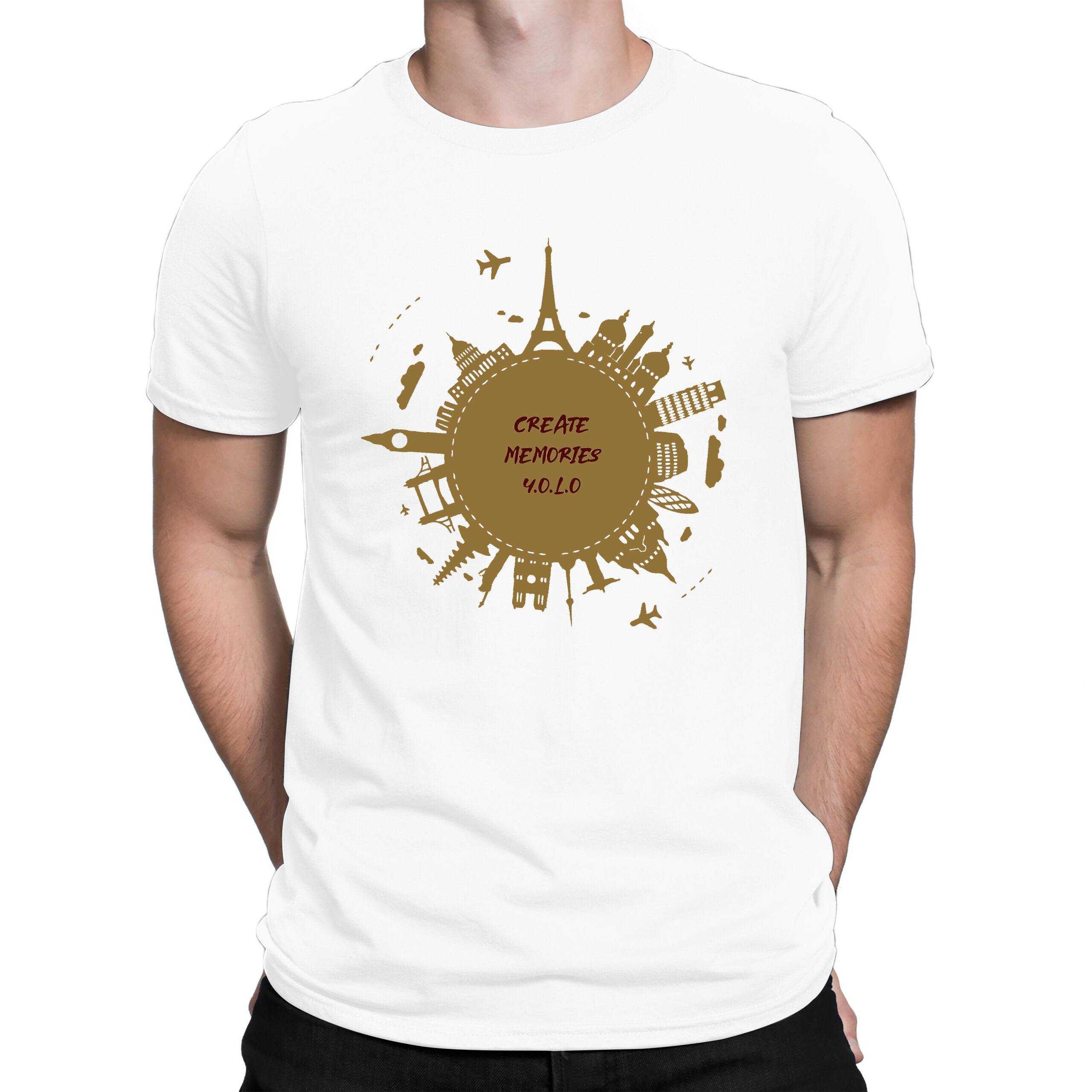 Celebrate the spirit of adventure with this bold and inspiring “Create Memories Y.O.L.O” t-shirt. Featuring iconic global landmarks in a stunning radial design, this tee is made for wanderers, memory-makers, and those who live by the motto You Only Live Once. Whether you’re planning your next trip or just dreaming of one, wear your love for travel with pride.